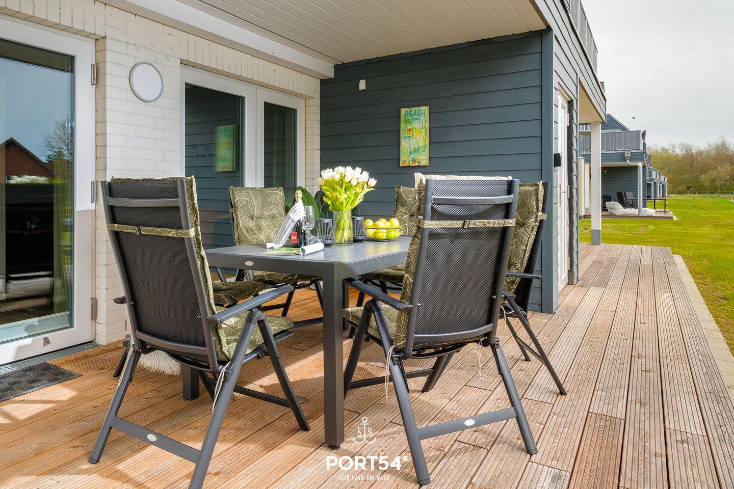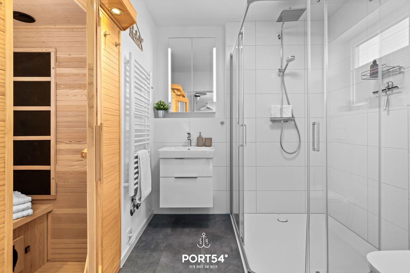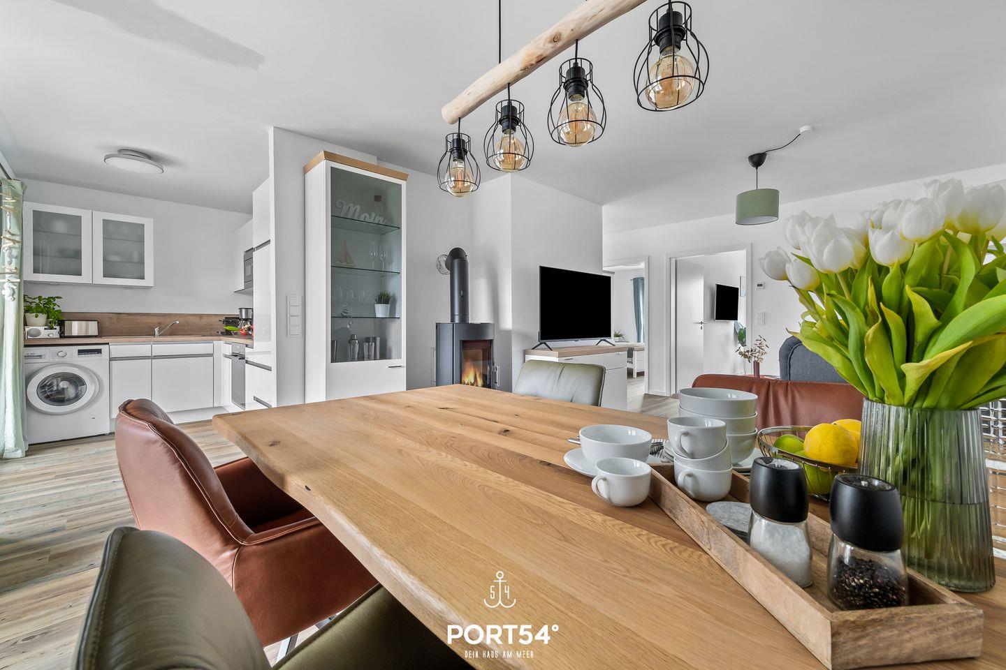 Moderne Ferienwohnung Sundowner in Büsum mit Terrasse, Kamin, Infrarotsauna und Fußbodenheizung für erholsamen Urlaub.