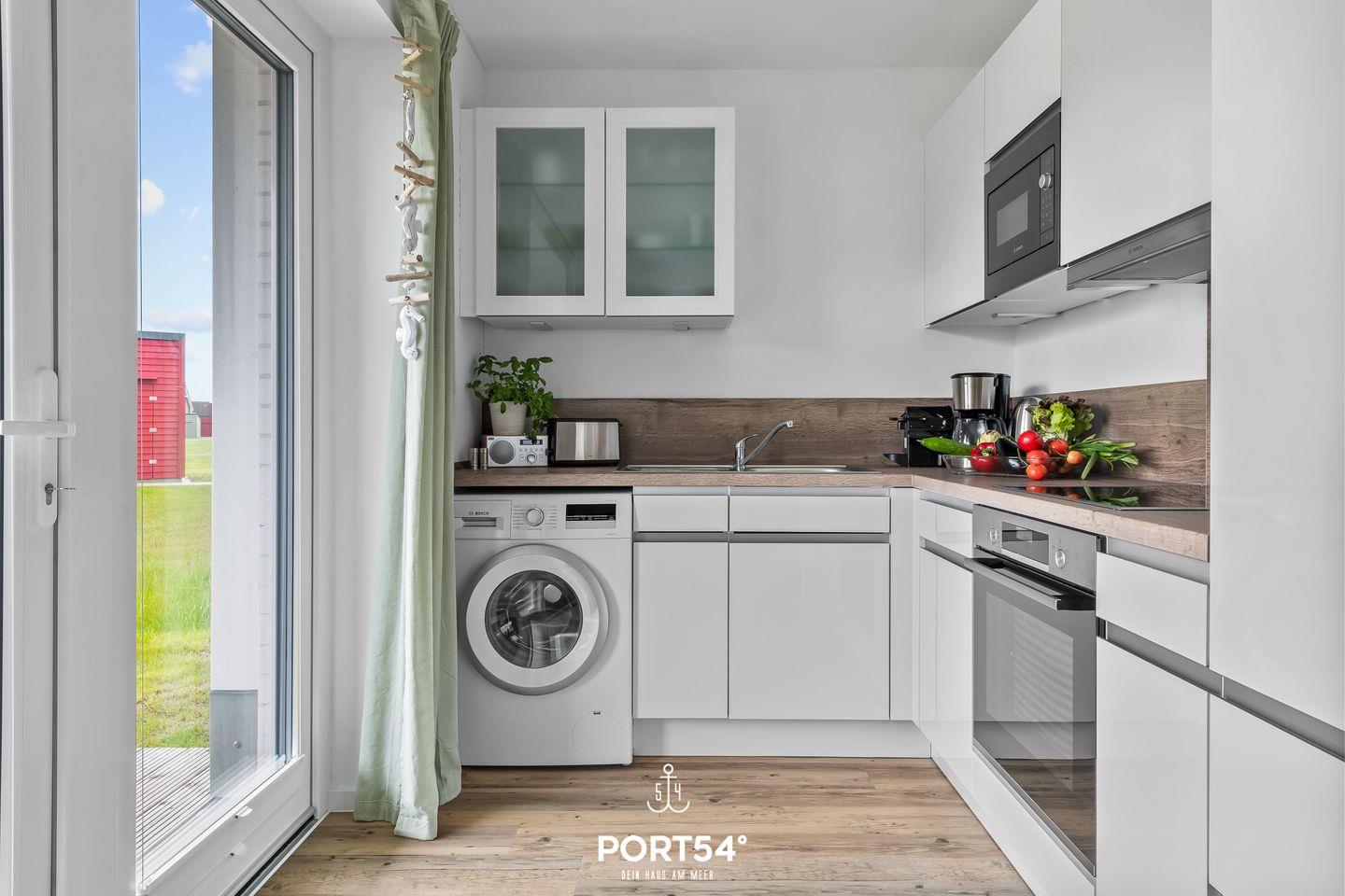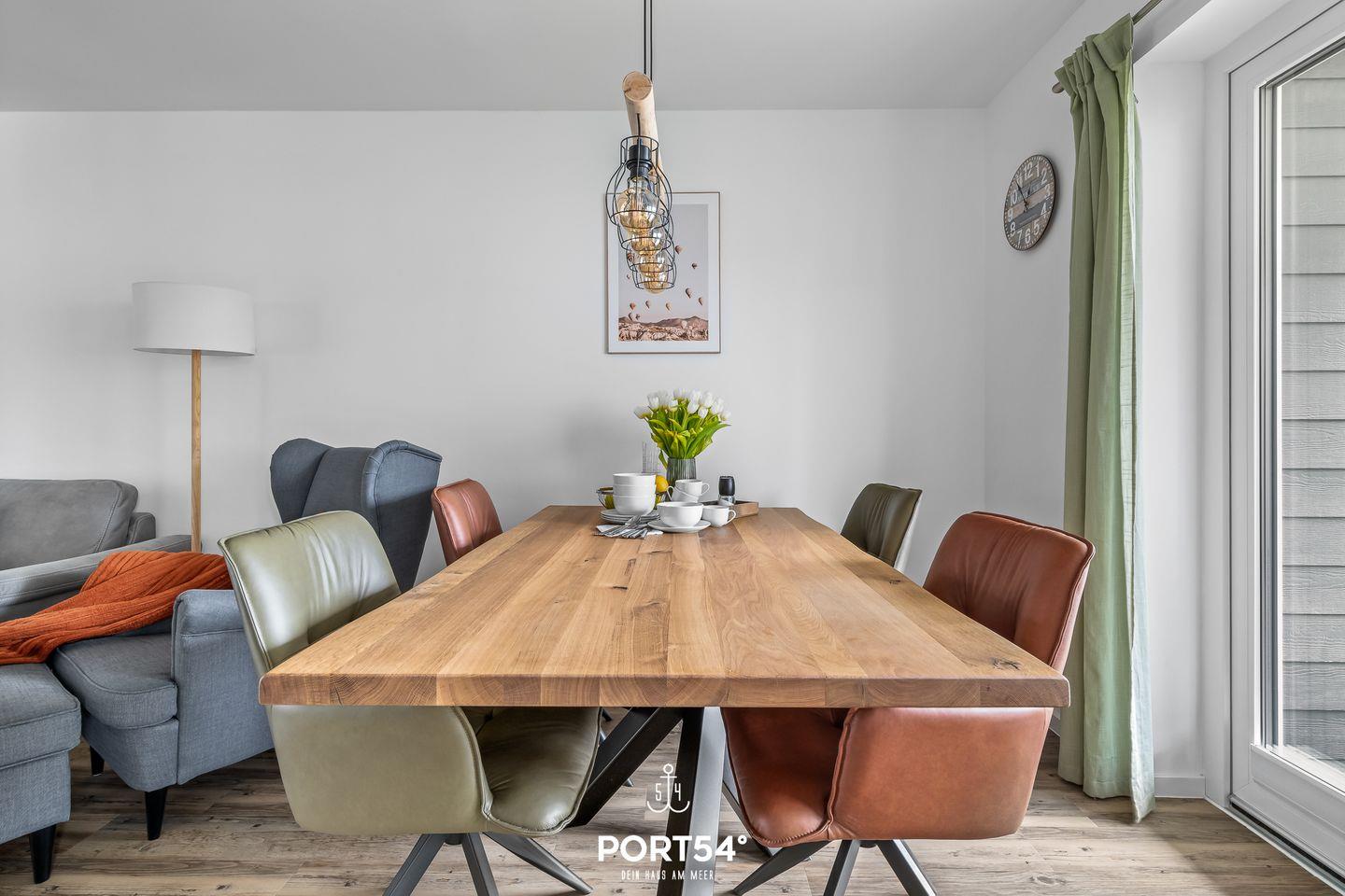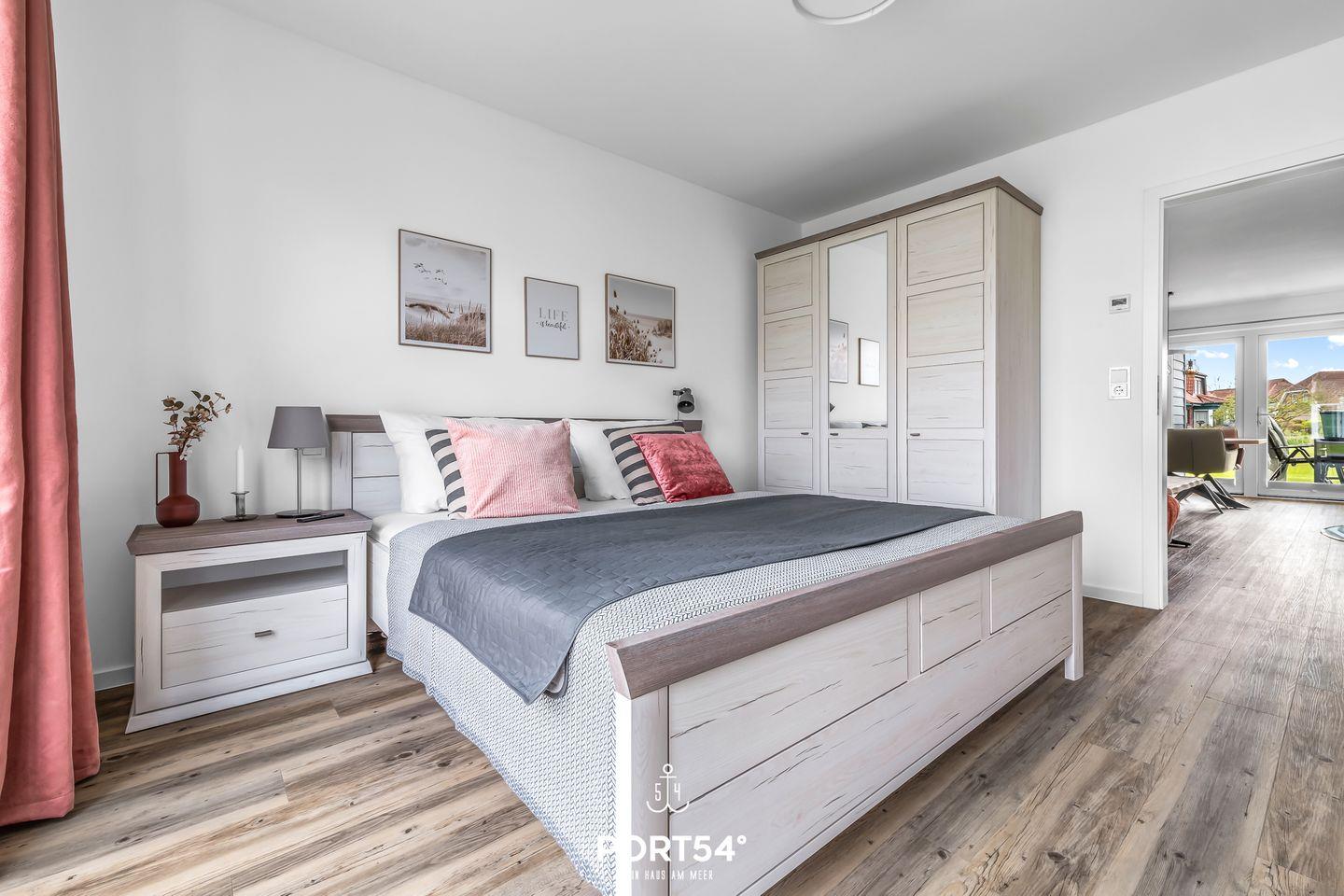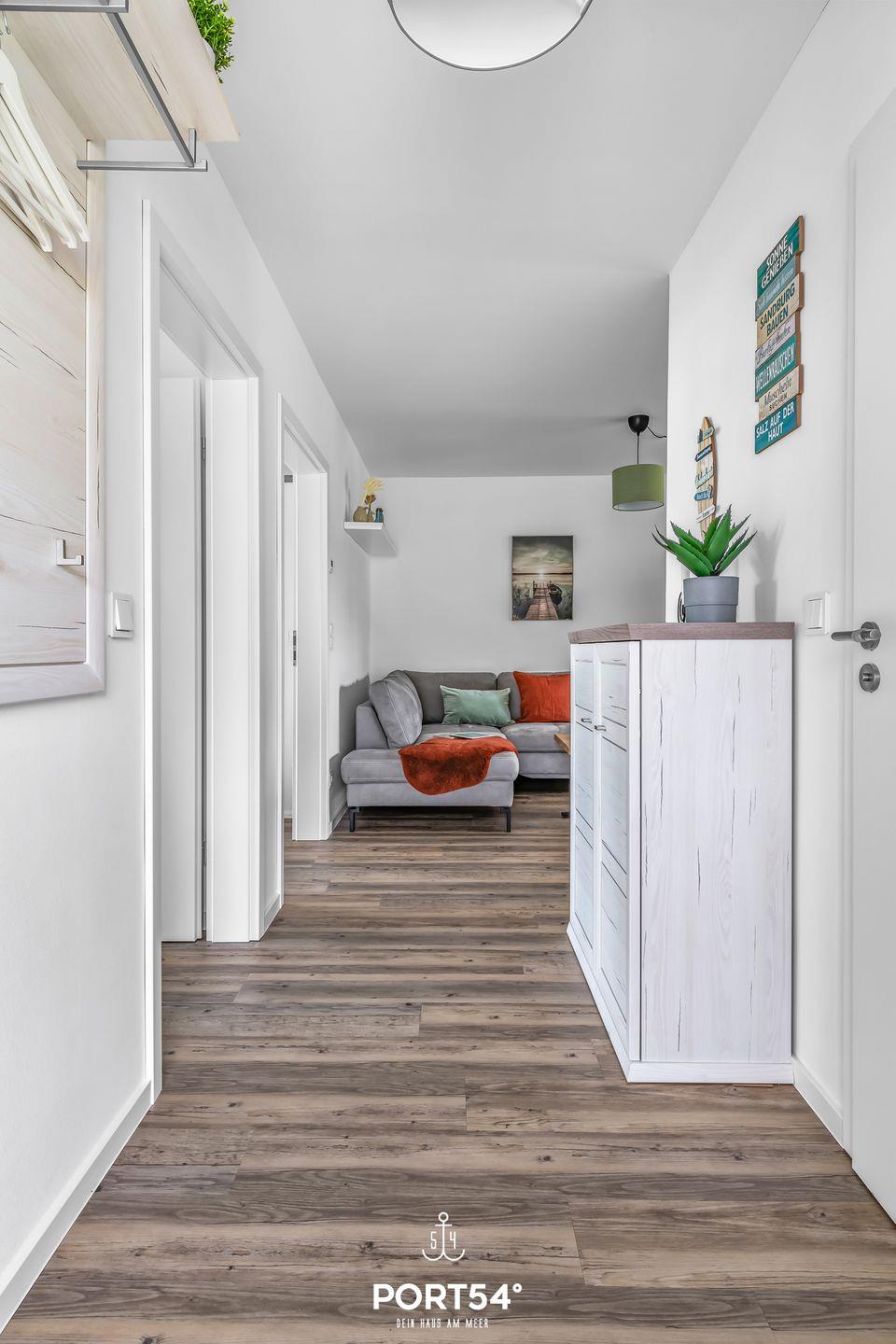 Moderne Ferienwohnung Sundowner in Büsum mit Terrasse, Kamin, Infrarotsauna und Fußbodenheizung für erholsamen Urlaub.