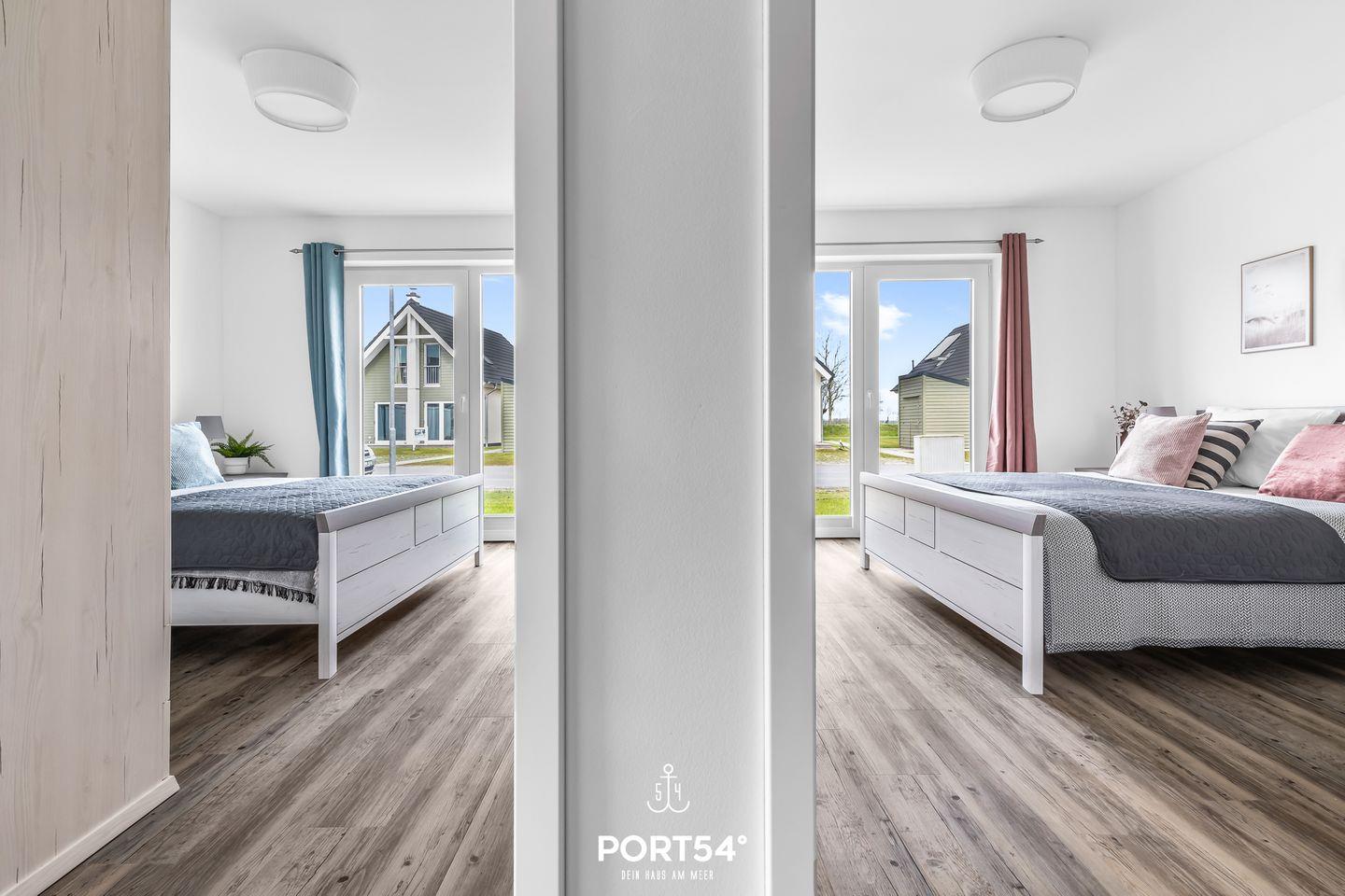 Die Ferienwohnung bietet zwei Schlafzimmer mit Doppelbetten, einen offenen Wohn-/Essbereich, ein Badezimmer sowie eine Terrasse.