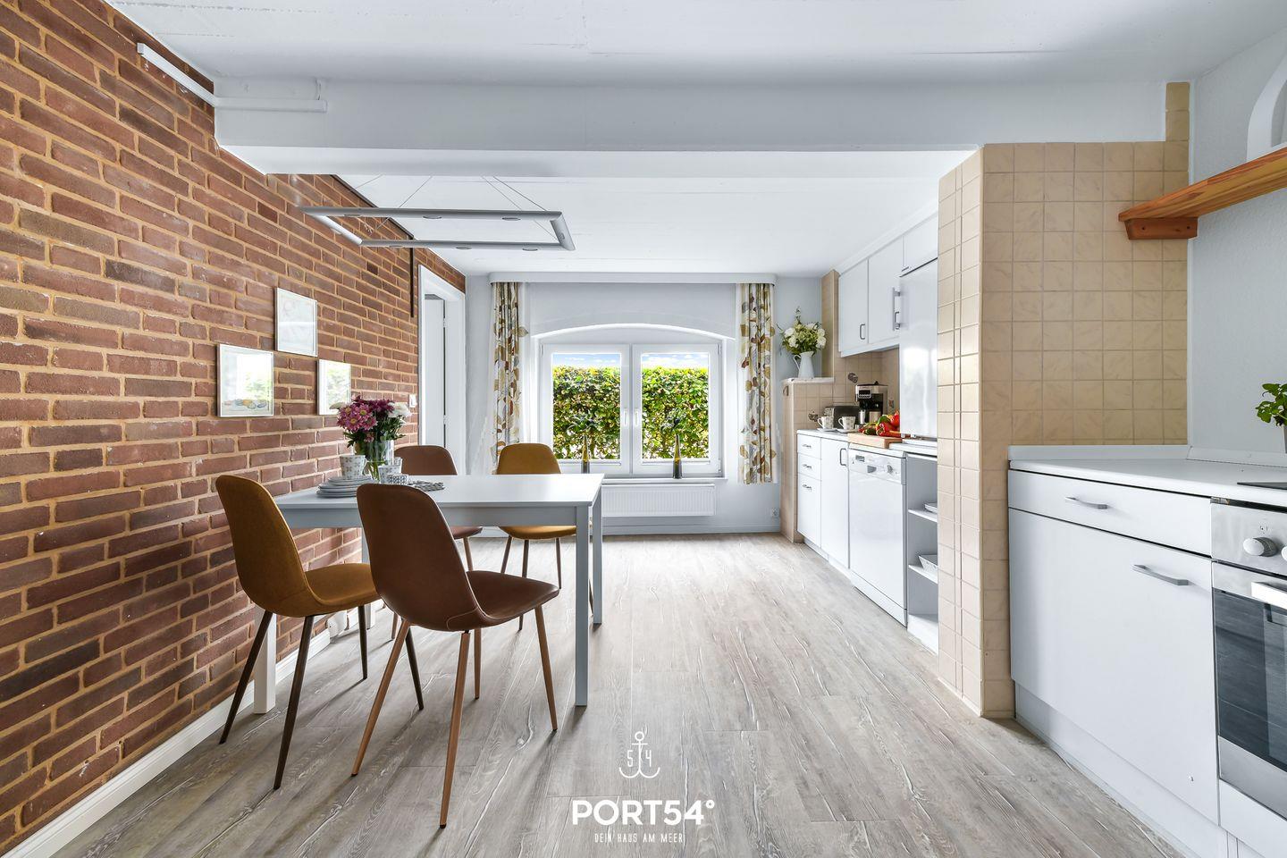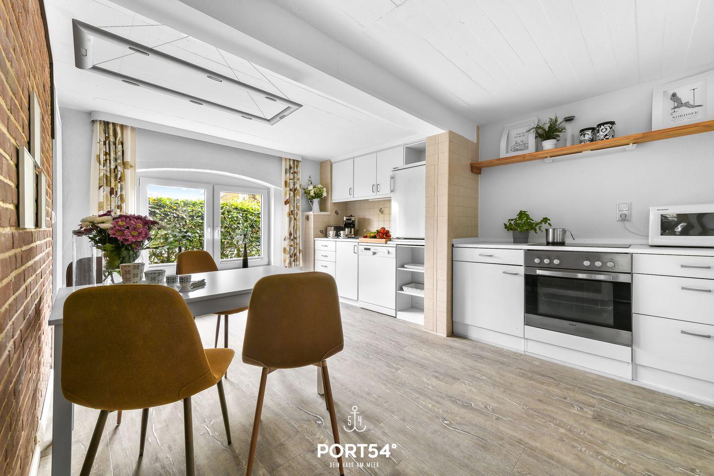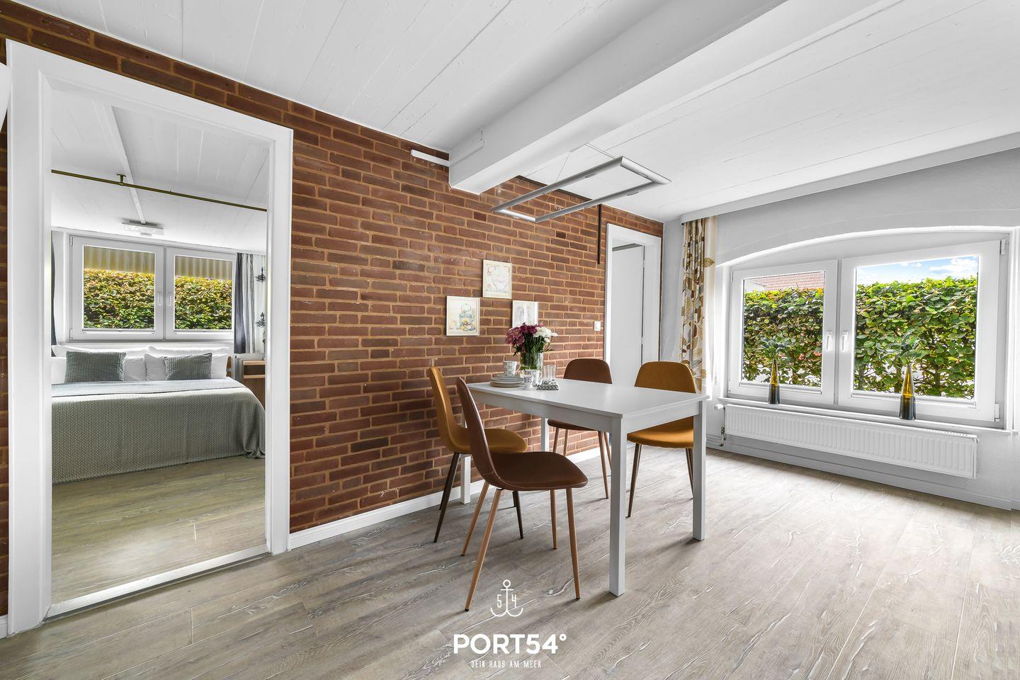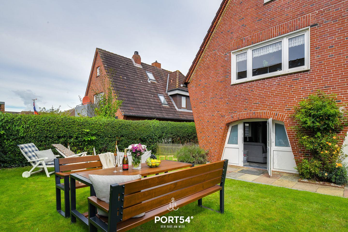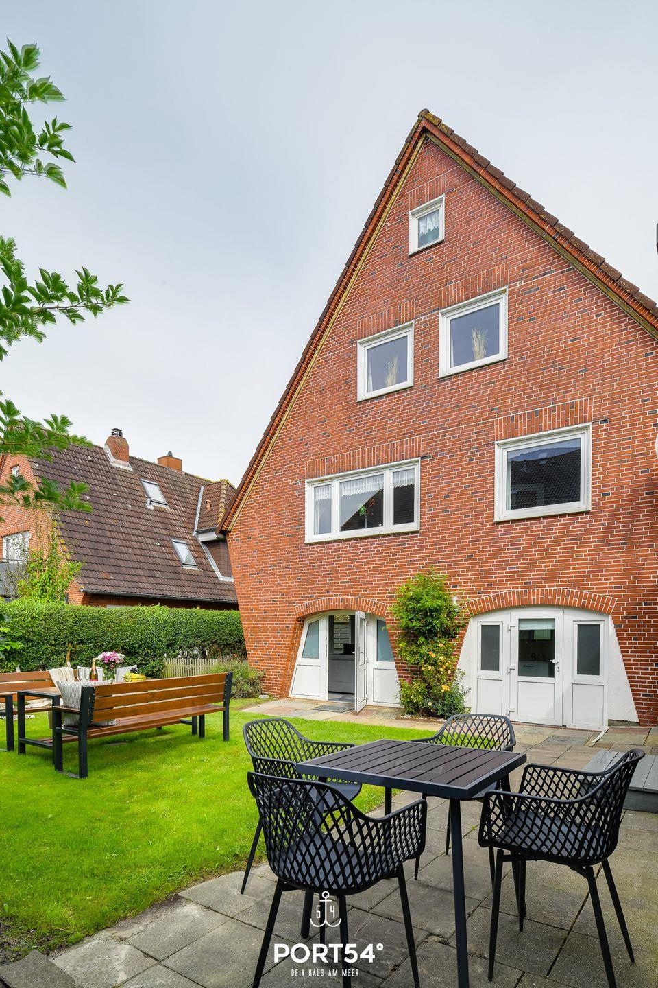 Die Ferienwohnung bietet auf 66m² einen offenen Wohn- und Essbereich mit Küche, zwei Schlafzimmer und zwei Badezimmer. Im Wohnzimmer gibt es einen Elektrokamin. Die Schlafzimmer bieten jeweils ein gemütliches Doppelbett (160x200cm). In dem Badezimmer finden Sie einen Föhn und eine Dusche. Der Garten bietet einen Strandkorb, Gartenmöbel und einen Sonnenschirm. Ein Außenstellplatz ist direkt am Haus vorhanden. Fahrräder können in einem gemeinsam genutzten Werkraum abgestellt werden.