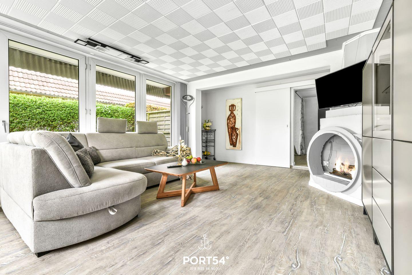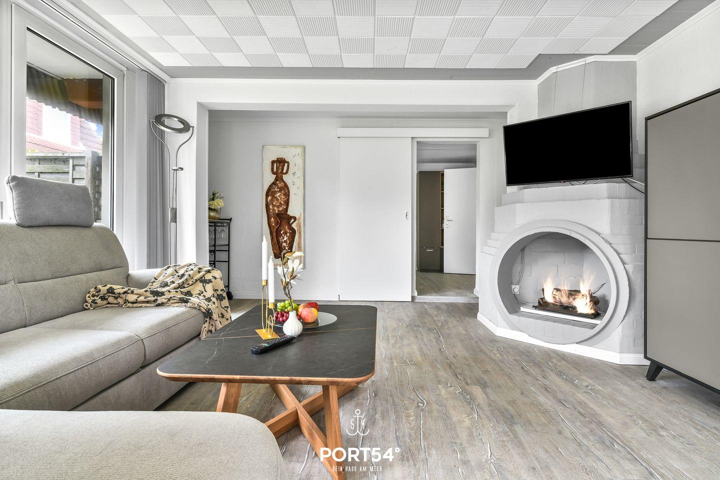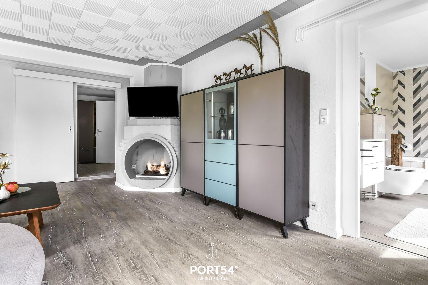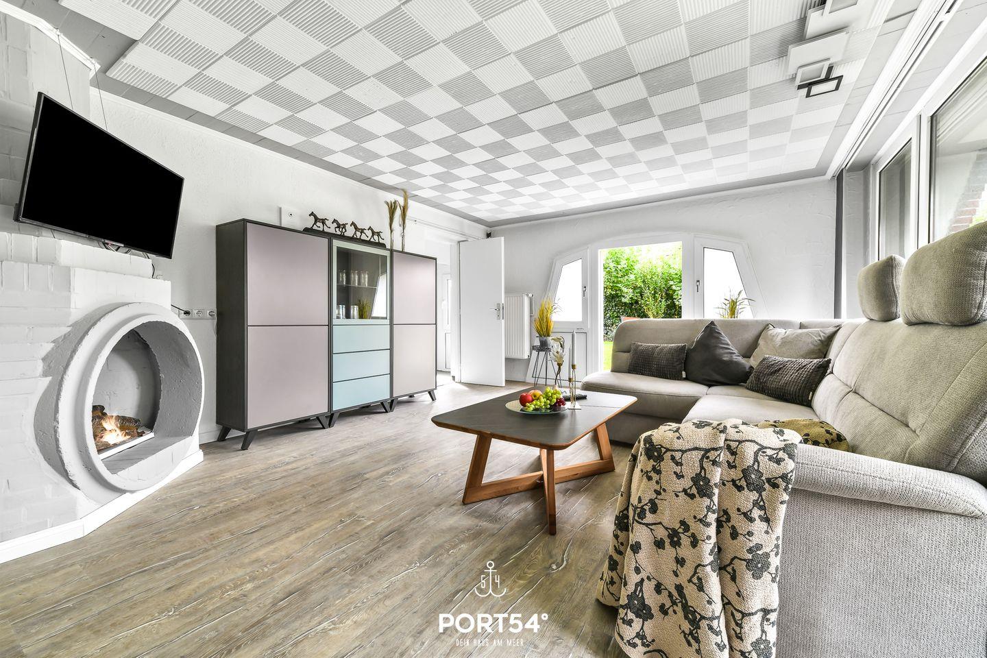 Hausboot Unterdeck in Büsum: Komfortable Ferienwohnung mit Garten, Kamin und Strandkorb, nur 200m vom Nordseestrand entfernt.