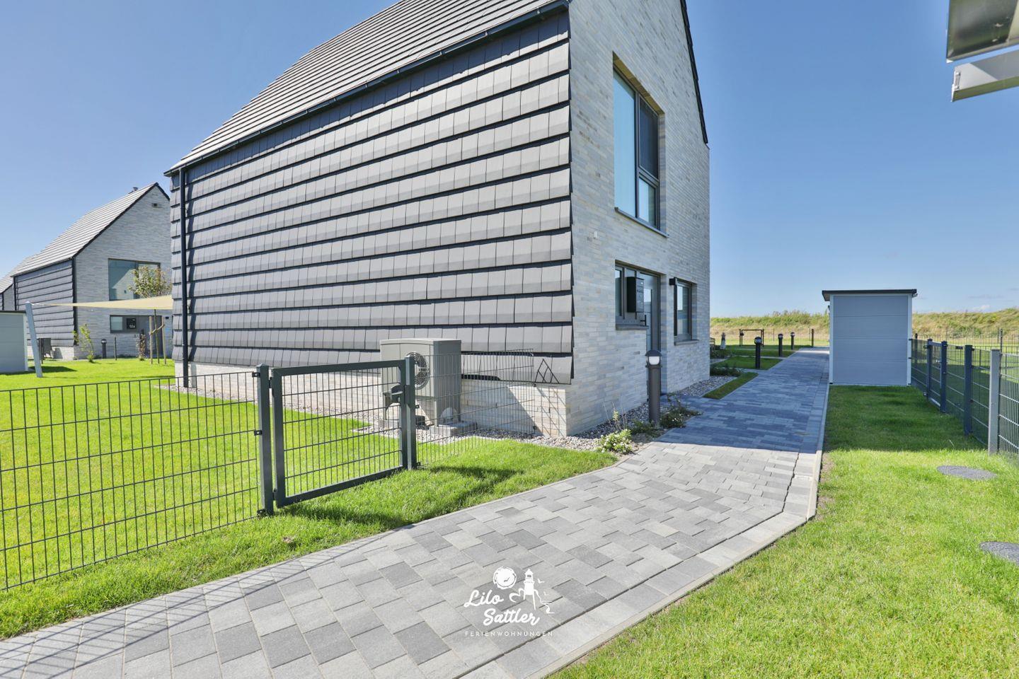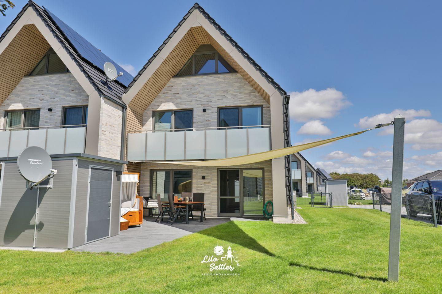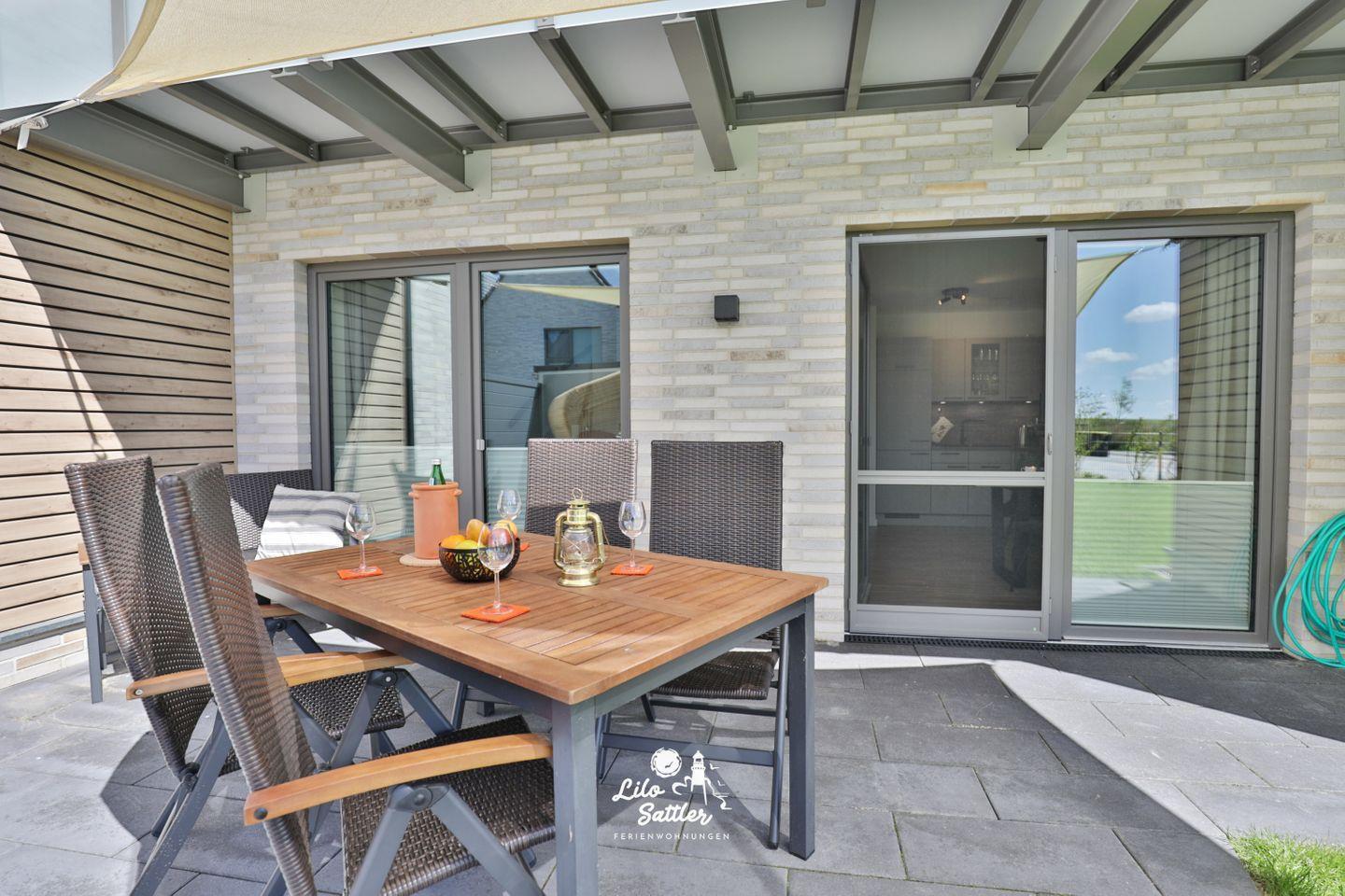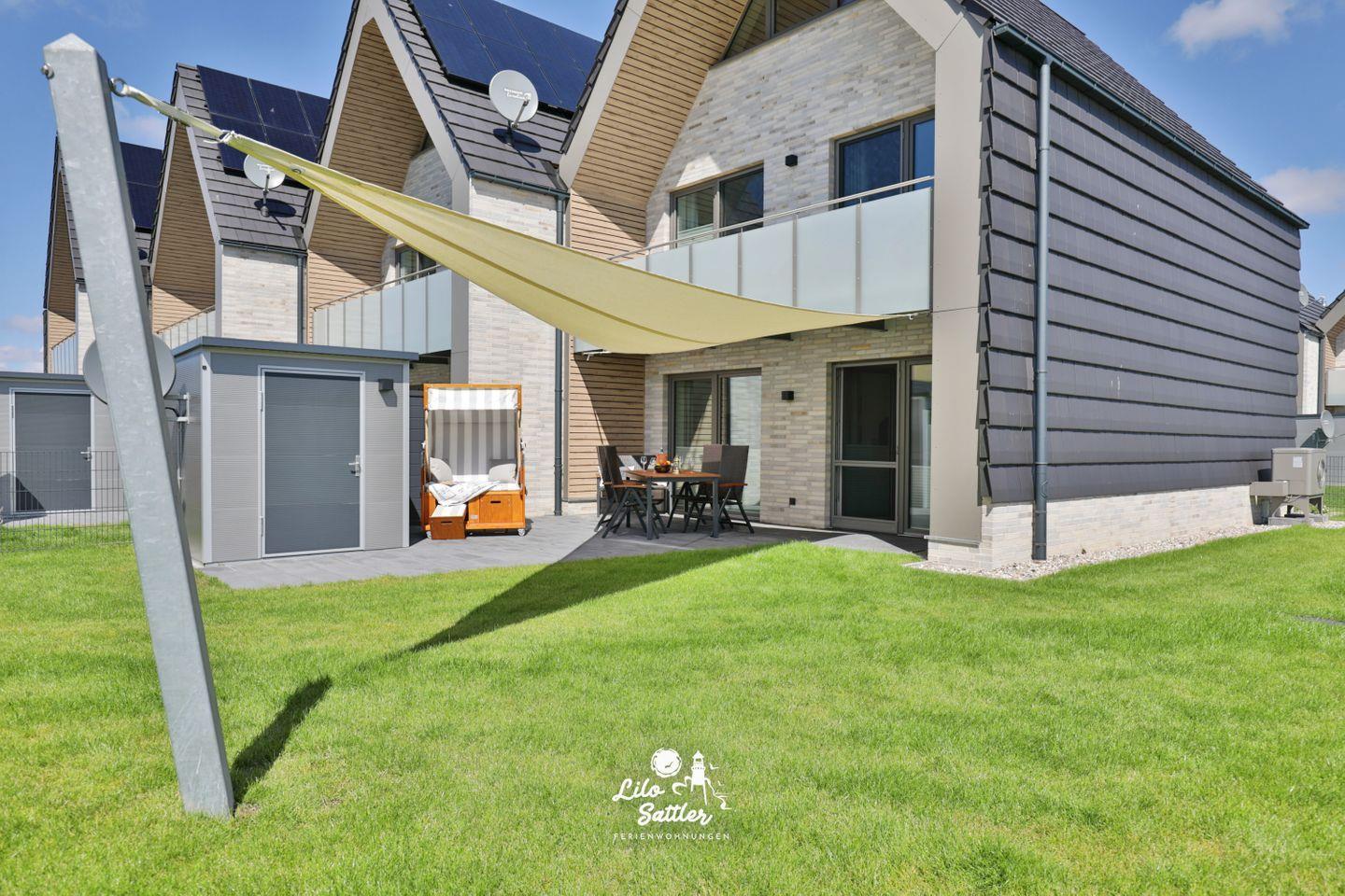 Im Garten können Sie auf der Terrasse unter einem Sonnensegel geschützt vor Sonne die herrliche Nordseeluft genießen und am Abend im gemütlichen Strandkorb den Tag nordseetypisch mit einem Urlaubsdrink ausklingen lassen.