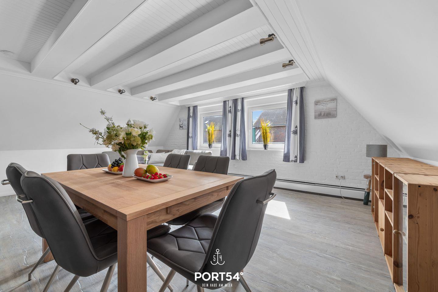 Herzlich Willkommen im "Hausboot an der Lagune Oberdeck" in Büsum! Strandnah entspannen an der Nordsee! Die Ferienwohnung bietet auf 82 m² einen offenen Wohn- und Essbereich, eine Küche und zwei Schlafzimmer sowie ein Bad. Im Wohnzimmer kann man sich auf dem Sofa vor dem Flachbildfernseher entspannen. In der voll ausgestatteten Küche kann nach Lust und Laune gekocht werden. Ein Schlafzimmer verfügt über ein bequemes Doppelbett und Verdunklungsmöglichkeiten. Das zweite Schlafzimmer, das durch eine Treppe in das Dachgeschoss führt, verfügt über zwei weitere einfache Einzelbetten. Für unsere kleinen Gäste gibt es einen Kinderhochstuhl und ein Kinderreisebett.