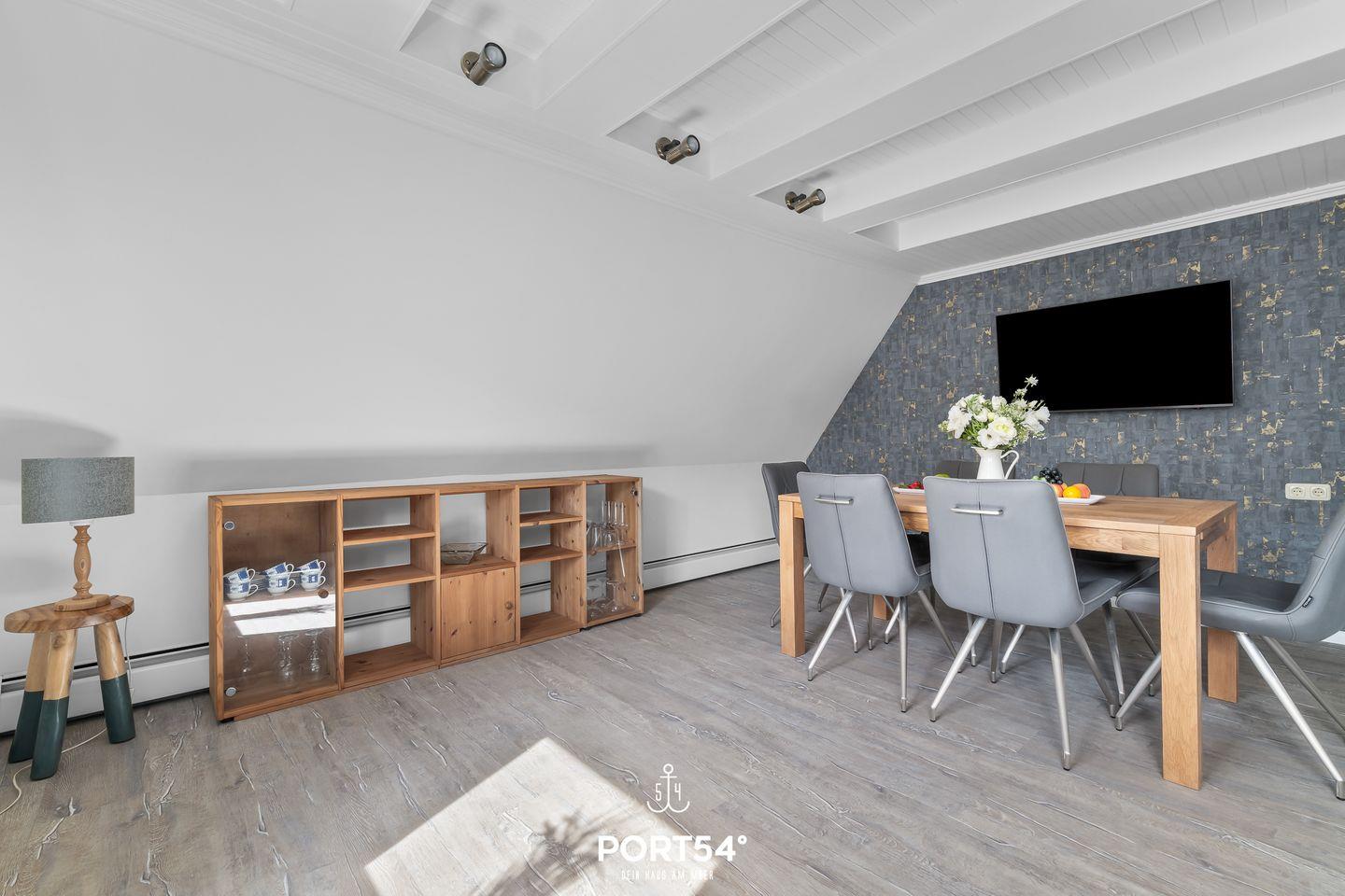 Die Strandnah gelegene Ferienwohnung bietet auf 82 m² einen offenen Wohn- und Essbereich mit Küche, zwei Schlafzimmer und ein Badezimmer. Eines der Schlafzimmer ist mit einem Doppelbett ausgestattet. Im Dachgeschoss stehen zwei einfache Einzelbetten zu Verfügung. Das Badezimmer verfügt über einen Föhn und eine Dusche. Ein Außenstellplatz am Haus ist vorhanden und Fahrräder können in einem gemeinschaftlichen Werkraum untergestellt werden.