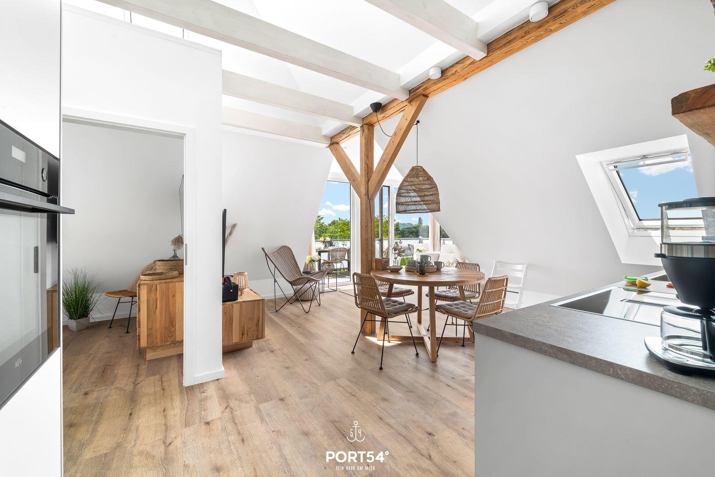 Die Ferienwohnung bietet auf 55m² Platz für 4 Personen. Es gibt zwei Schlafzimmer, einen offenen Wohn- und Essbereich, eine Küchenzeile und einen möblierten Balkon. Die Schlafzimmer verfügen jeweils über Doppelbetten, Flachbild-TV's und Verdunkelungsmöglichkeiten. In der vollausgestatteten hoch modernen Küche können leckere Gerichte gezaubert werden und im Wohnzimmer auf dem Sofa oder auf dem großen Balkon die Tage ausgeklungen werden. Ein Stellplatz und ein Fahrradschuppen sind vorhanden.