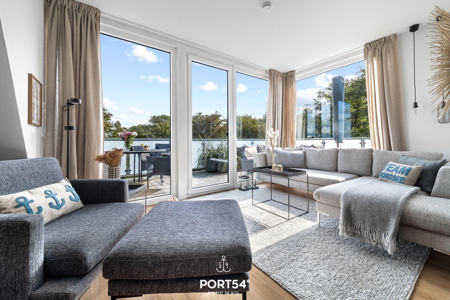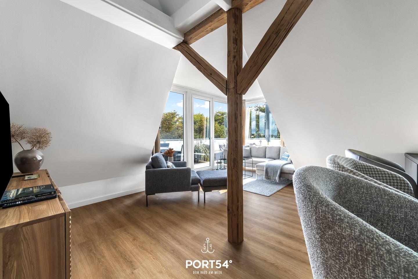 Das lichtdurchflutete Wohnzimmer mit Sofa und Sessel bietet Ihnen die perfekte Möglichkeit, nach einem langen Tag zu entspannen, während Sie am Fernseher einen Film schauen oder einfach die ruhige Atmosphäre genießen. Von hier aus gelangen Sie direkt auf den wunderschönen Balkon, der Ihnen einen traumhaften Blick auf die Umgebung ermöglicht - ideal zum Entspannen bei einer Tasse Kaffee oder einem guten Buch.