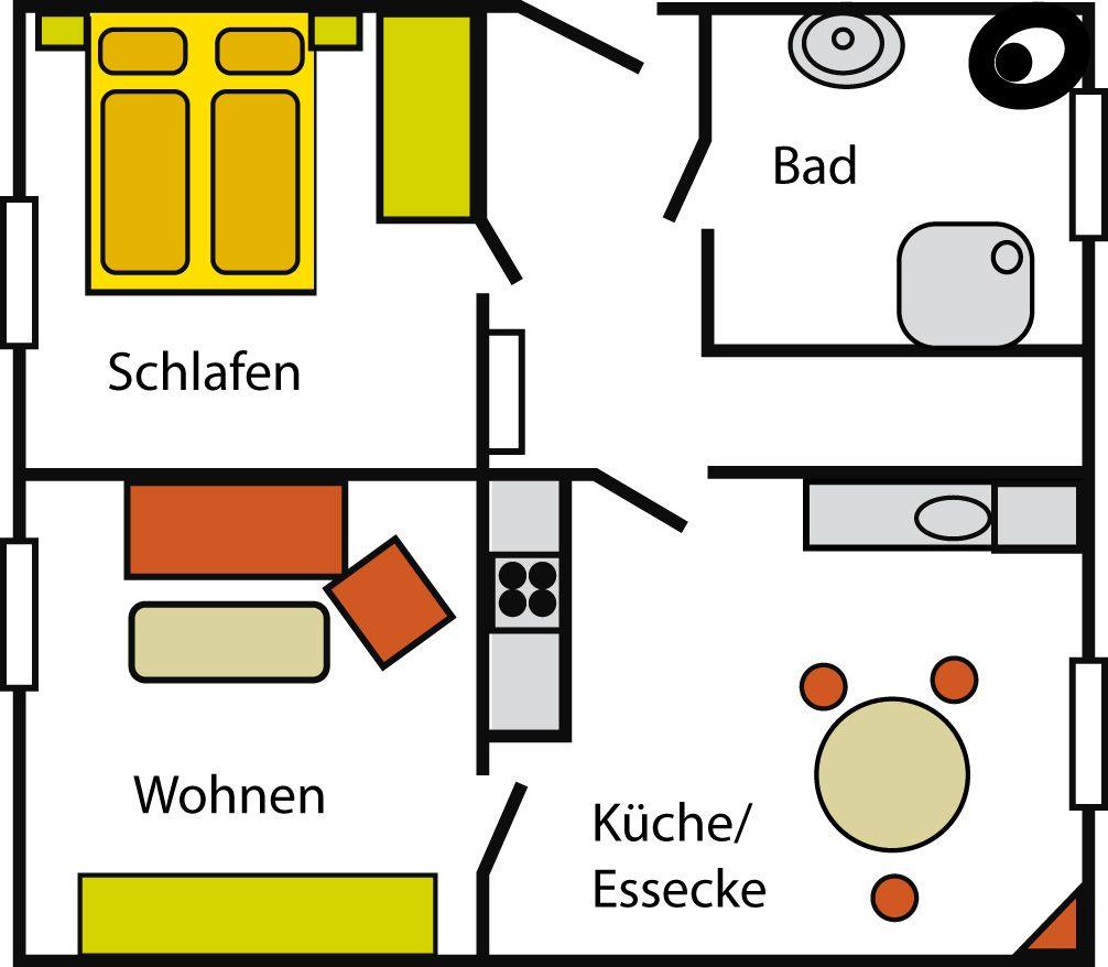Die Ferienwohnung Seestern im Obergeschoss bietet auf 50 m² Wohnfläche eine ansprechende Unterkunft für bis zu zwei Personen.