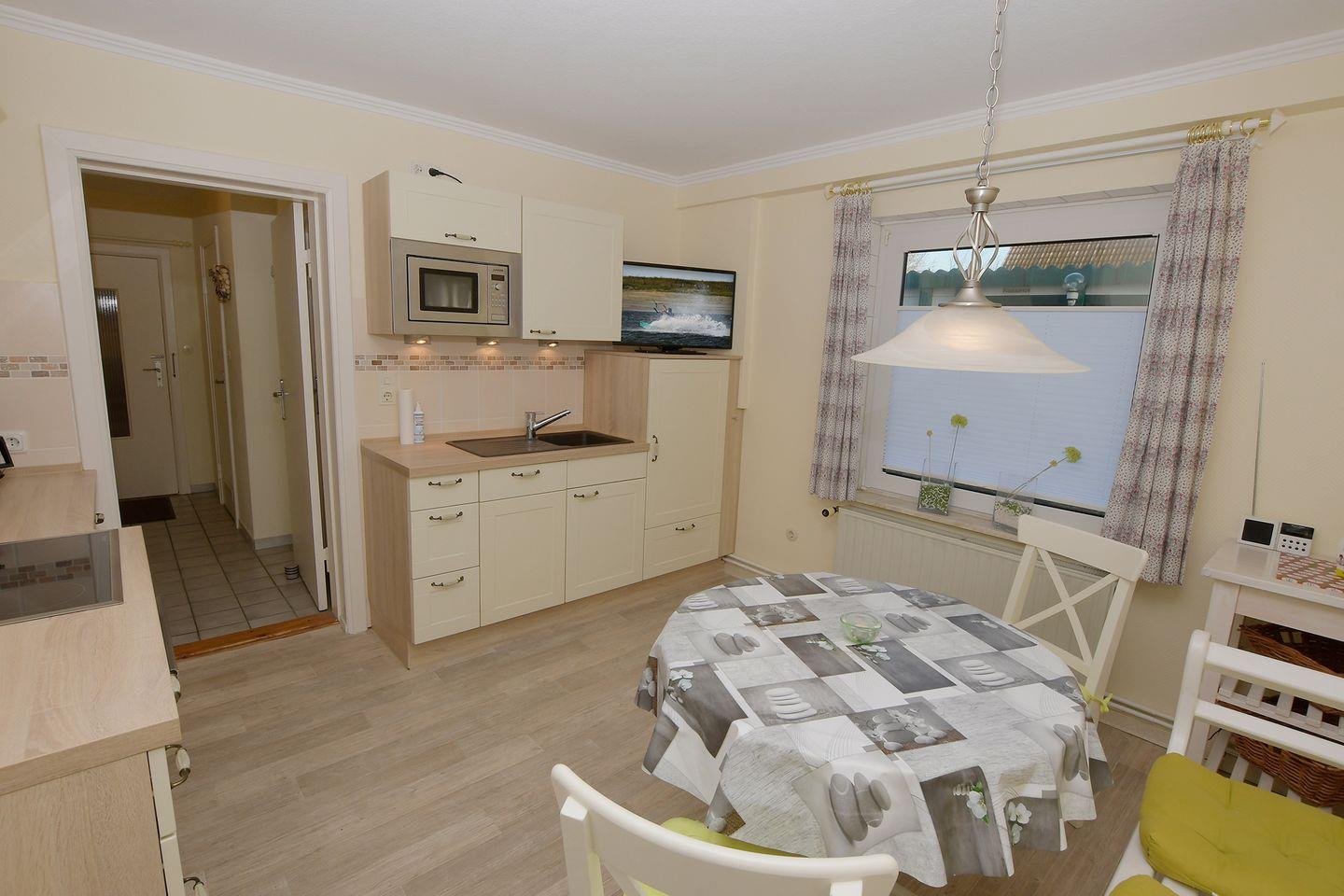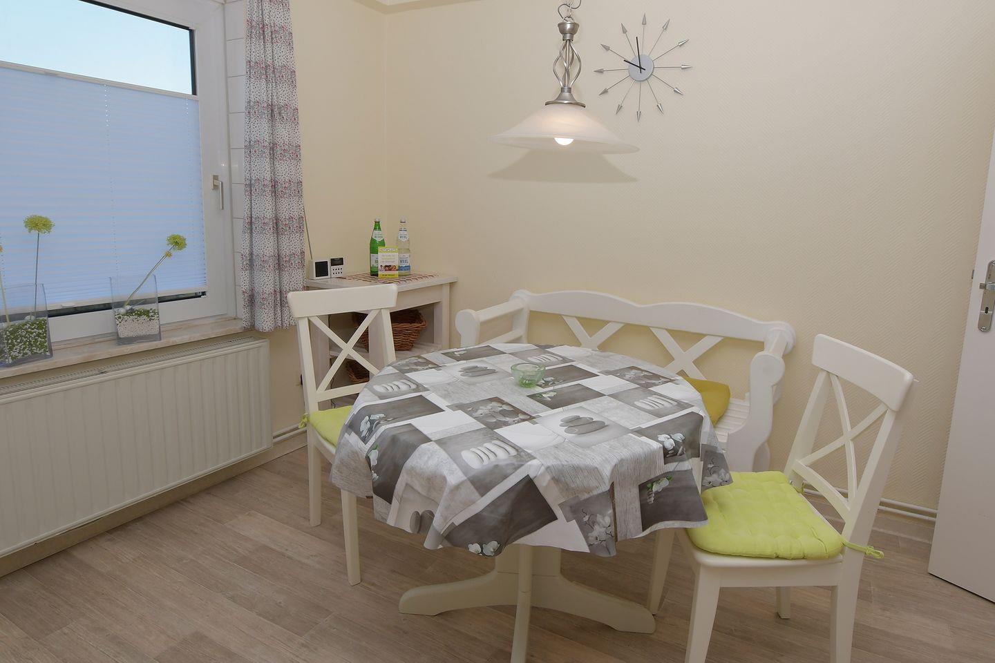 Die Küche mit Esstisch ermöglicht durch die umfassende Ausstattung mit Spülmaschine, Backofen, Cerankochfeld, Mikrowelle, Kaffeemaschine, Wasserkocher, Toaster, Kühlschrank sowie Küchenutensilien eine bequeme und flexible Selbstverpflegung. Zu Ihrer Verfügung stehen Geschirrhandtücher sowie eine Grundausstattung an Bettwäsche und Handtüchern.