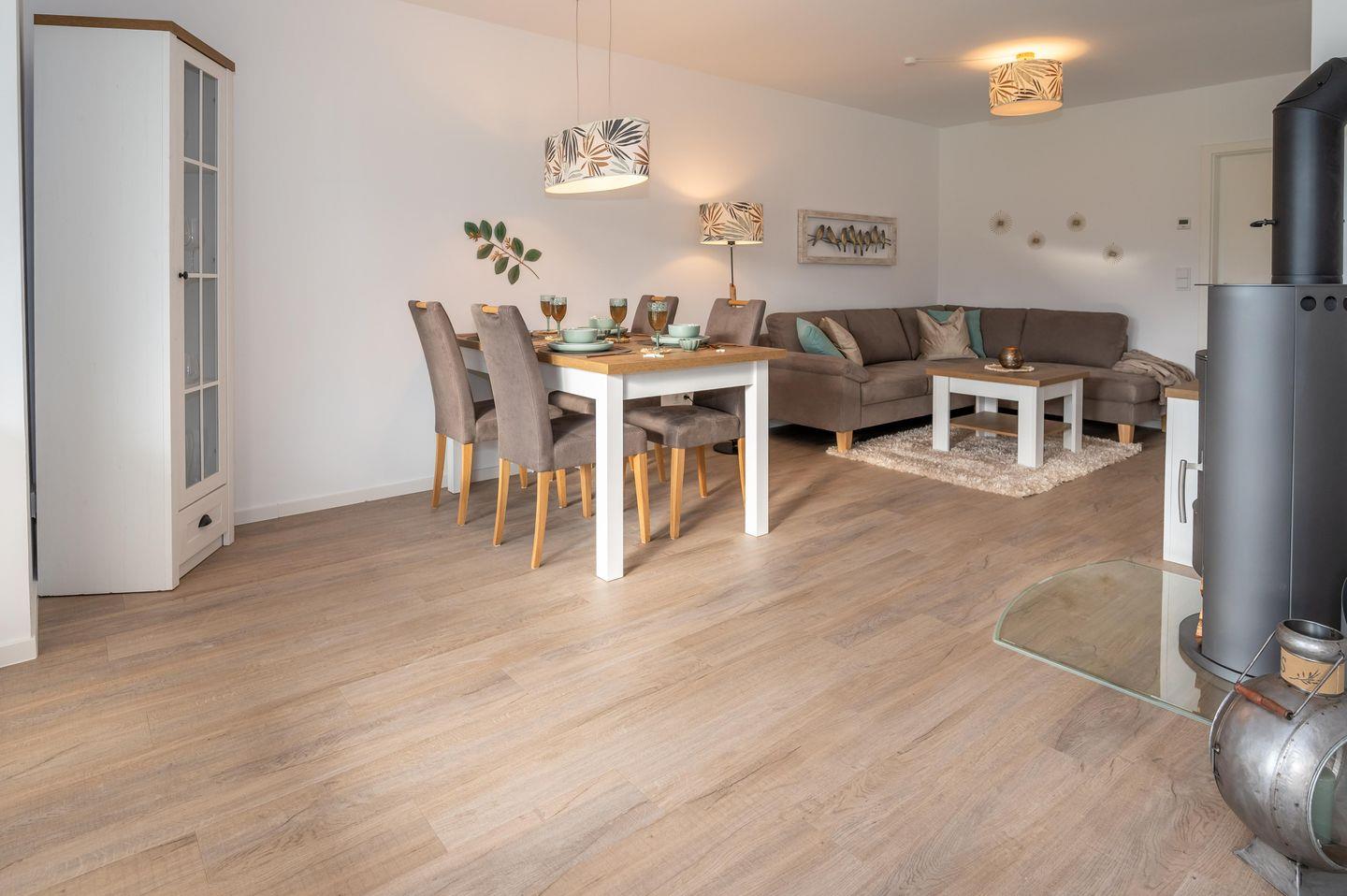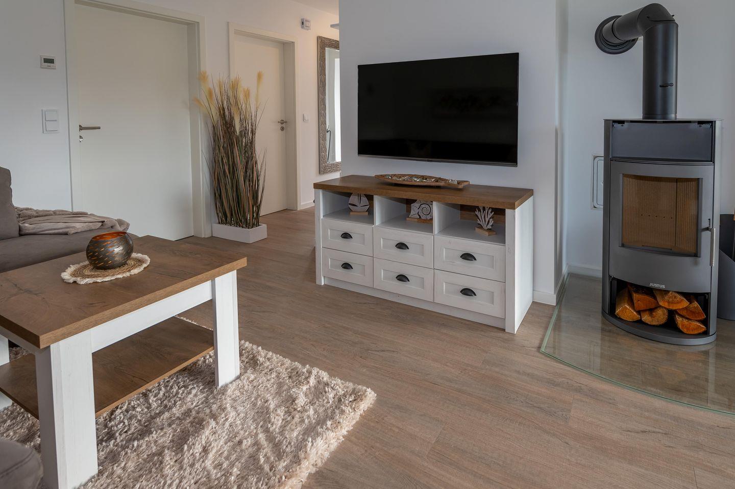 Gemütliche Ferienwohnung Friesenkind in Büsum mit Sauna, Kamin, Terrasse und moderner Ausstattung für erholsame Nordseeferien.
