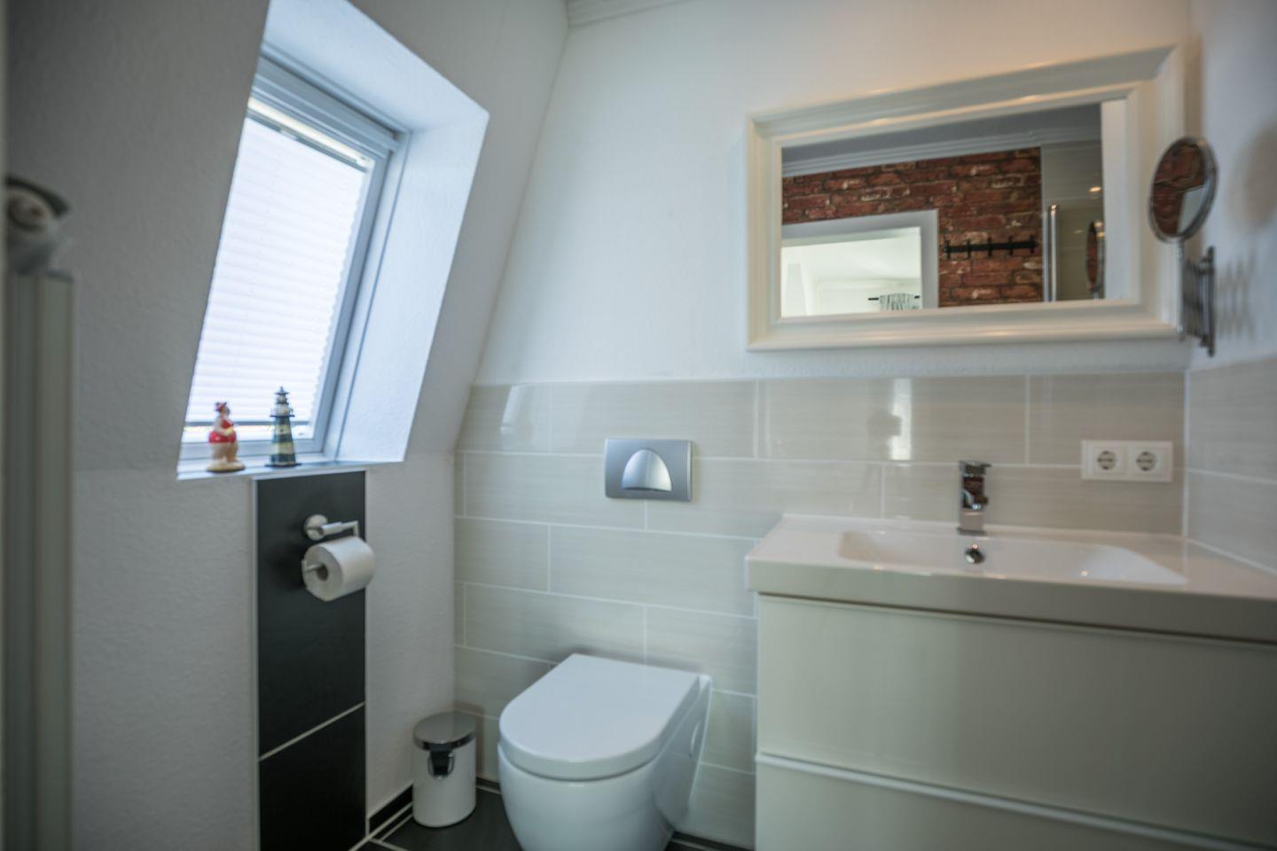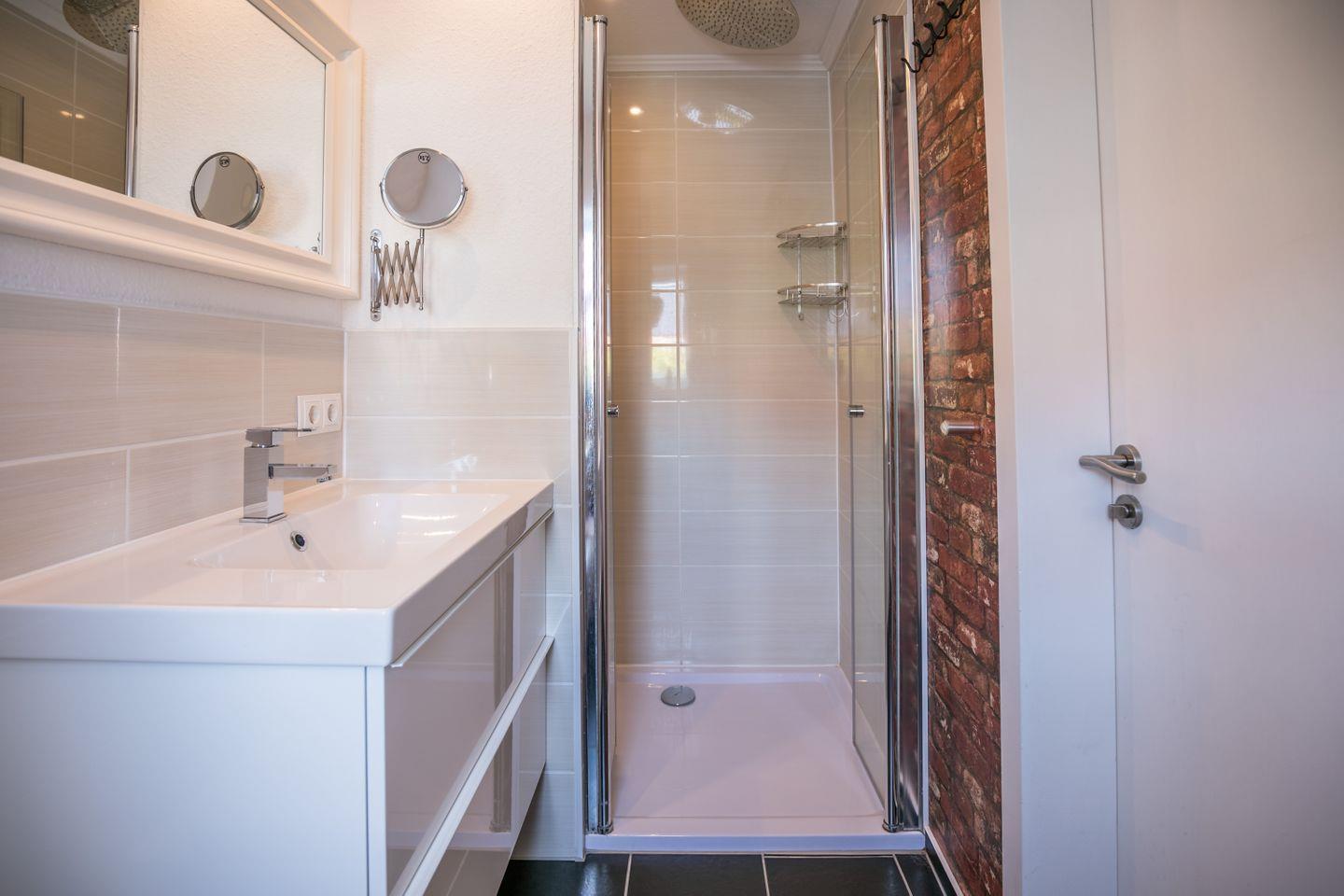 Sanitär: Tageslicht - Duschbad (Regendusche), Haar-Föhn, Kosmetikspiegel