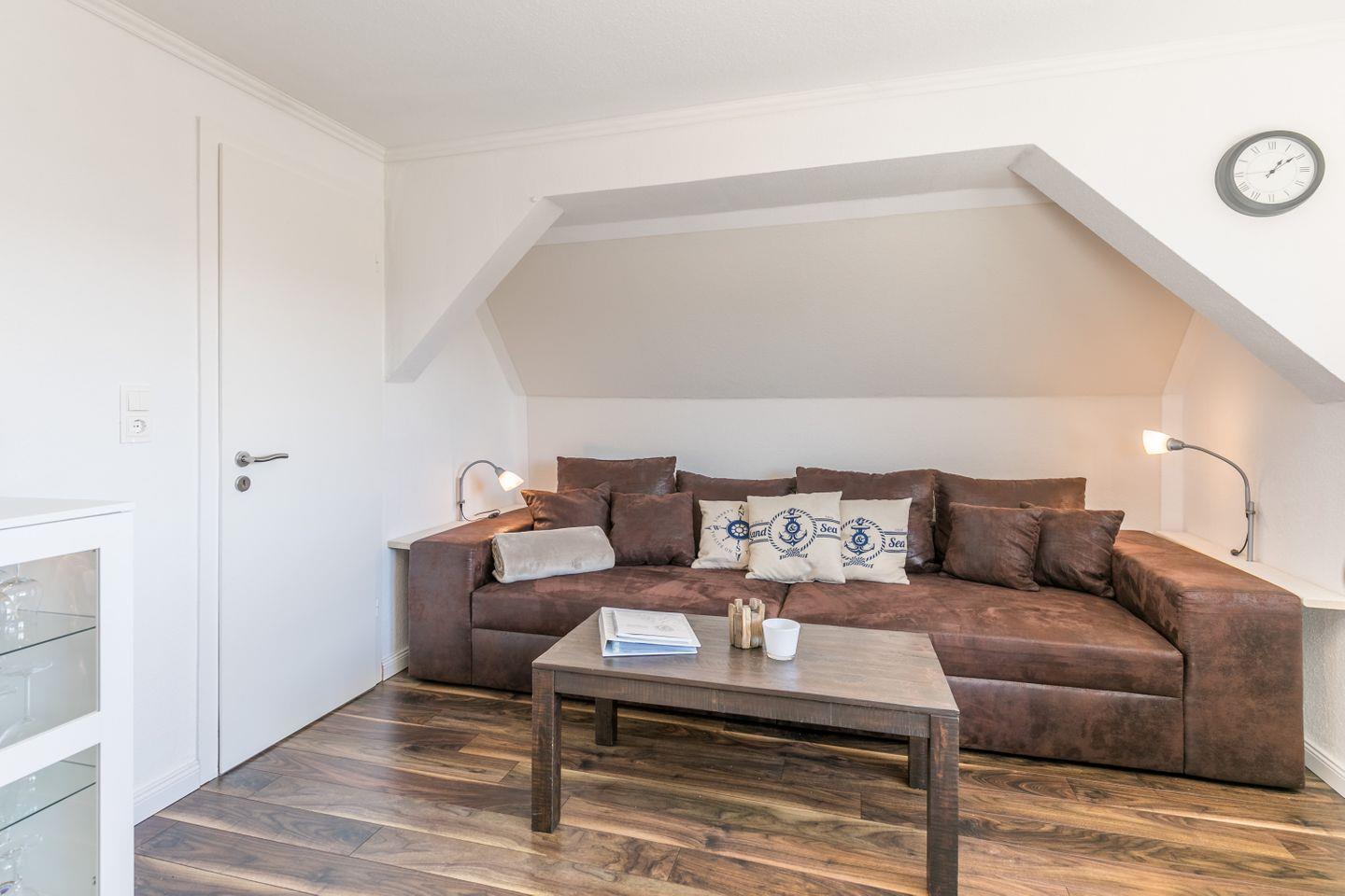 Haus Wellen und Meer Apartment 5 in Büsum bietet Ihnen 70 m² Wohnkomfort mit zwei Schlafzimmern, einer offenen Küche, zwei modernen Bädern mit bodengleicher Dusche und einem Balkon. WLAN, zwei TVs, ein eigener Parkplatz sowie Garten mit Strandkorb und Sonnenliegen sorgen für angenehme Aufenthalte. Der Strand ist etwa 650 m entfernt.