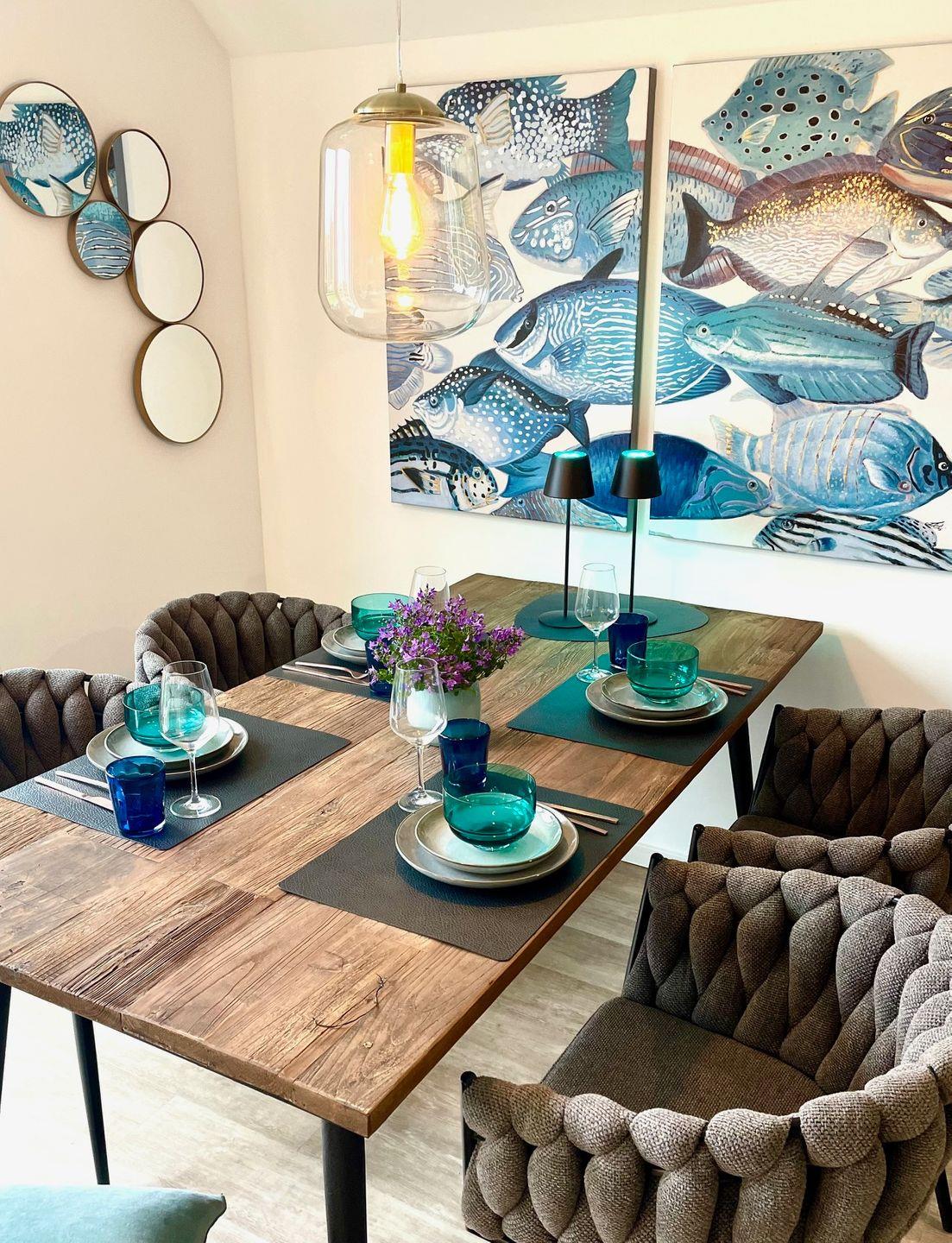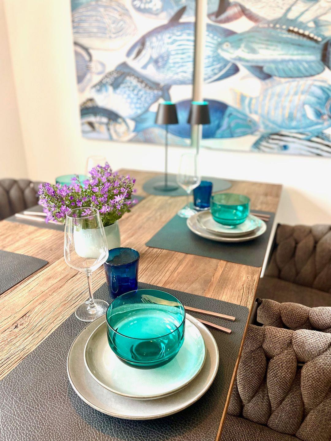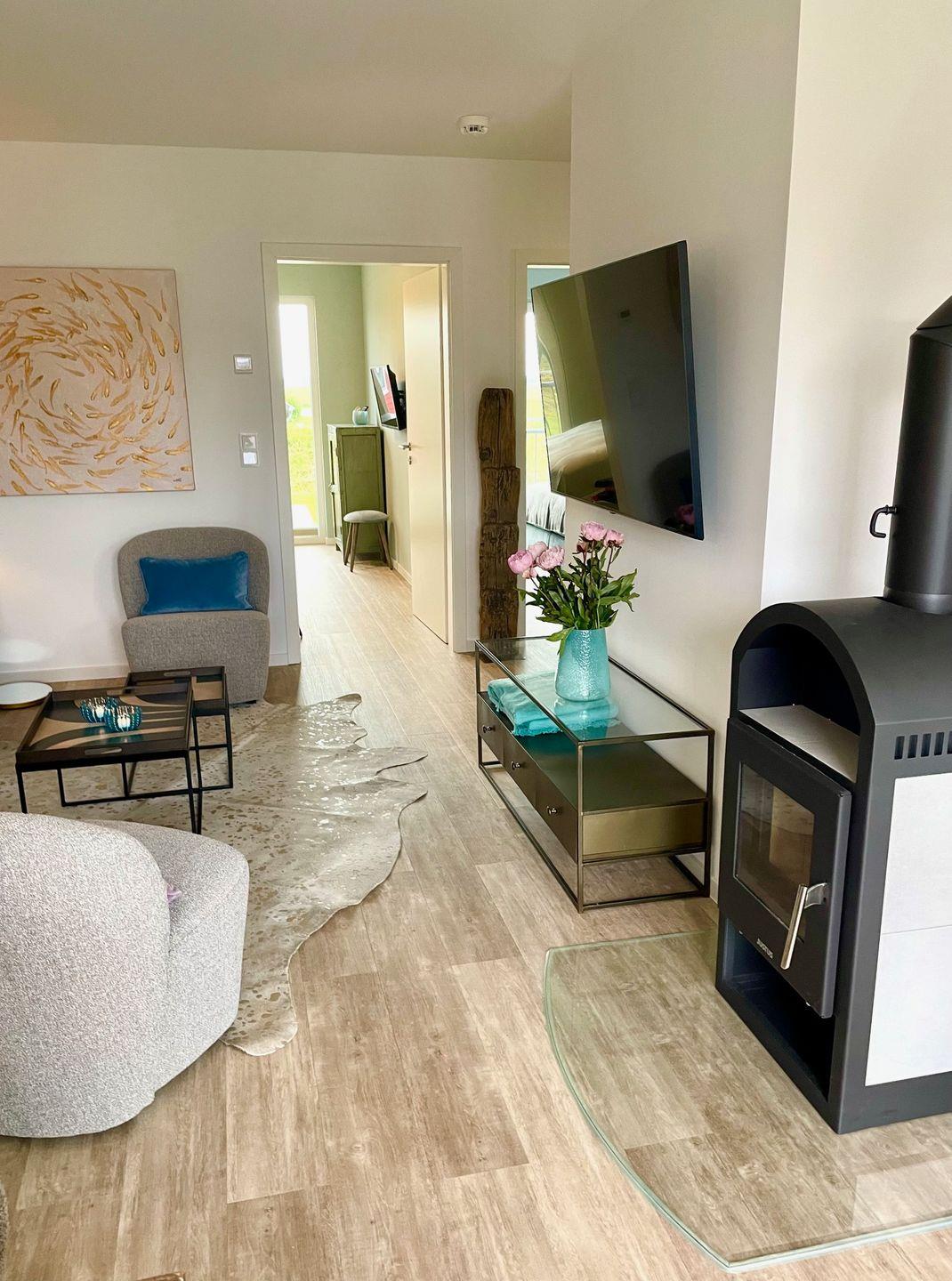 Im gemütlichen Wohnbereich können Sie sich auf dem Sofa vor dem Smart-TV mit Magenta-TV entspannen oder spannende Spieleabende verbringen. Der Kamin sorgt für wohlige Wärme und eine behagliche Atmosphäre. In der Küche können Sie nach Herzenslust kochen und backen. Für unsere kleinen Gäste stehen ein Hochstuhl und ein Kinderbett bereit.