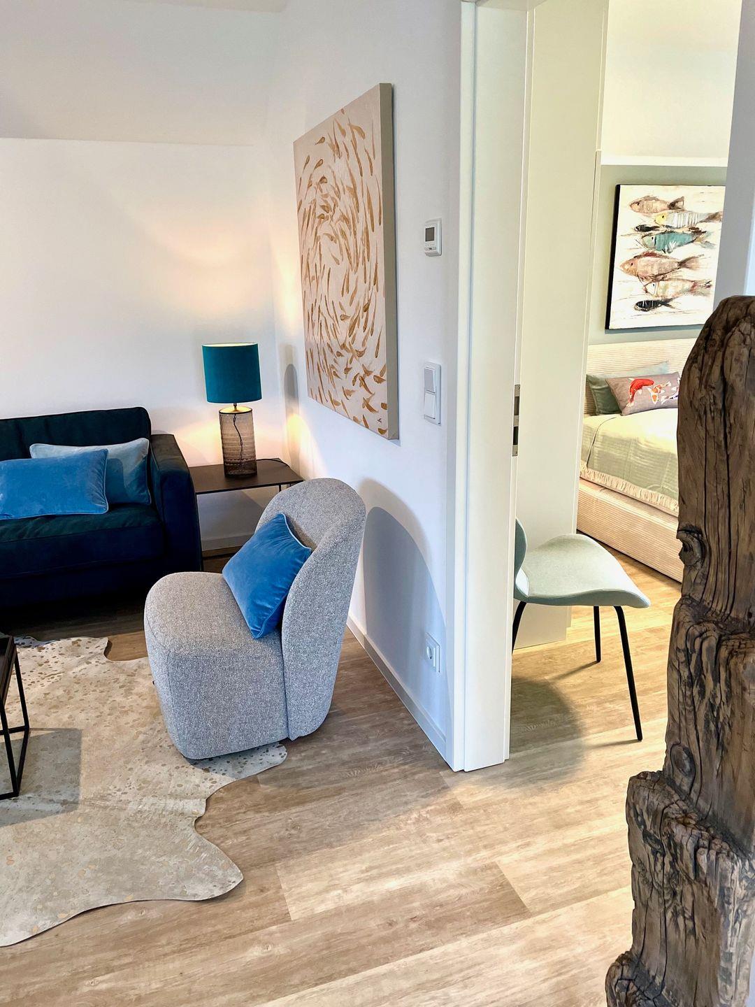 Modernes Ferienapartment "Achterdeck" in Büsum nahe Strand mit Balkon, Kamin und Infrarotsauna auf 80 m².