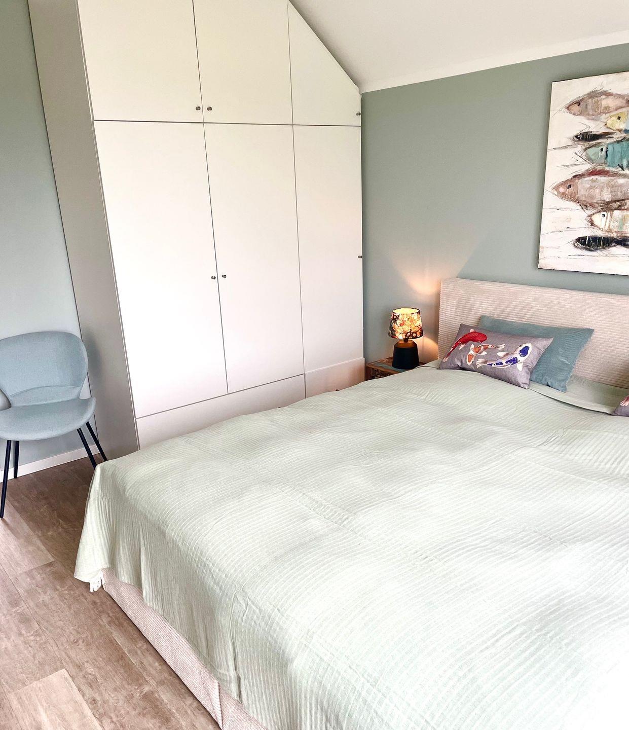 Es erwarten Sie auf knapp 80m² offene, lichtdurchflutete Räumlichkeiten mit einer geschmackvollen Einrichtung. Von der voll ausgestatteten Küche mit Essbereich gelangen Sie auf den Balkon, hier können Sie die Sonnenaufgänge genießen. Im Wohnzimmer befindet sich ein Kamin & ein gemütliches Sofa. Beide Schlafzimmer sind mit gemütlichen Doppelbetten ausgestattet. Das Badezimmer verfügt über eine ebenerdige Dusche & eine Infrarotkabine.