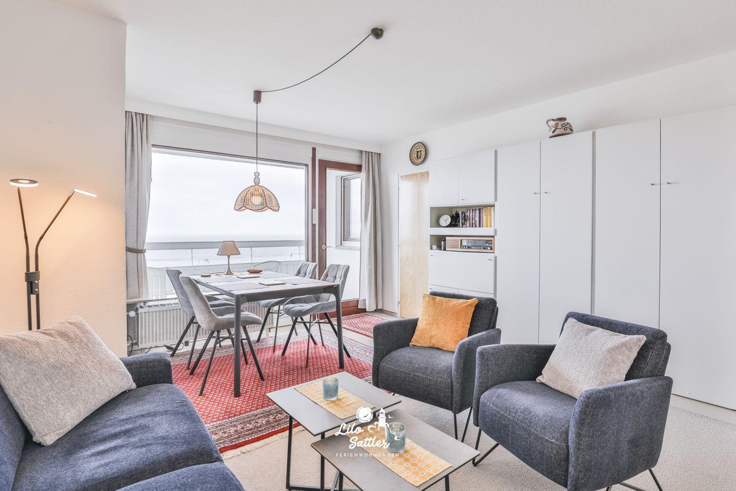 Die Ferienwohnung "Hochhaus 153" - liegt direkt am Meer, nur durch den Deich getrennt - und besticht mit einem atemberaubenden Blick aus dem 15. Stock auf das Wattenmeer. Diese Wohnung ist für maximal 3 Personen buchbar. Über ein paar Treppenstufen sowie über einem stufenlosen Nebeneingang sind die Eingänge zum Hochhaus erreichbar.