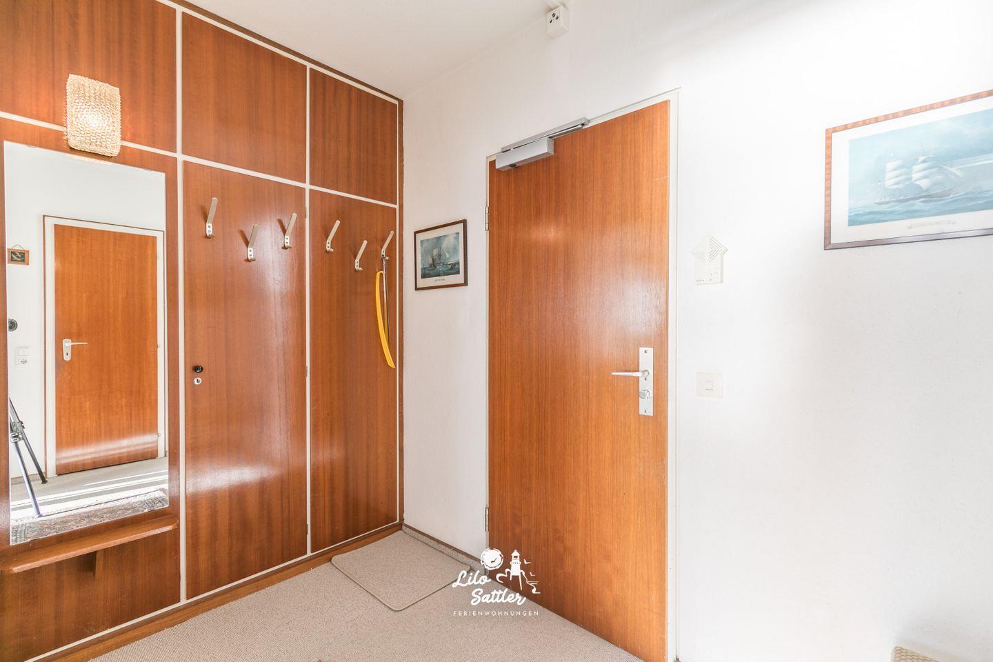 Garderobe, Hocker, Gegensprechanlage/Türöffner, Ganzkörperspiegel, Abstellkammer