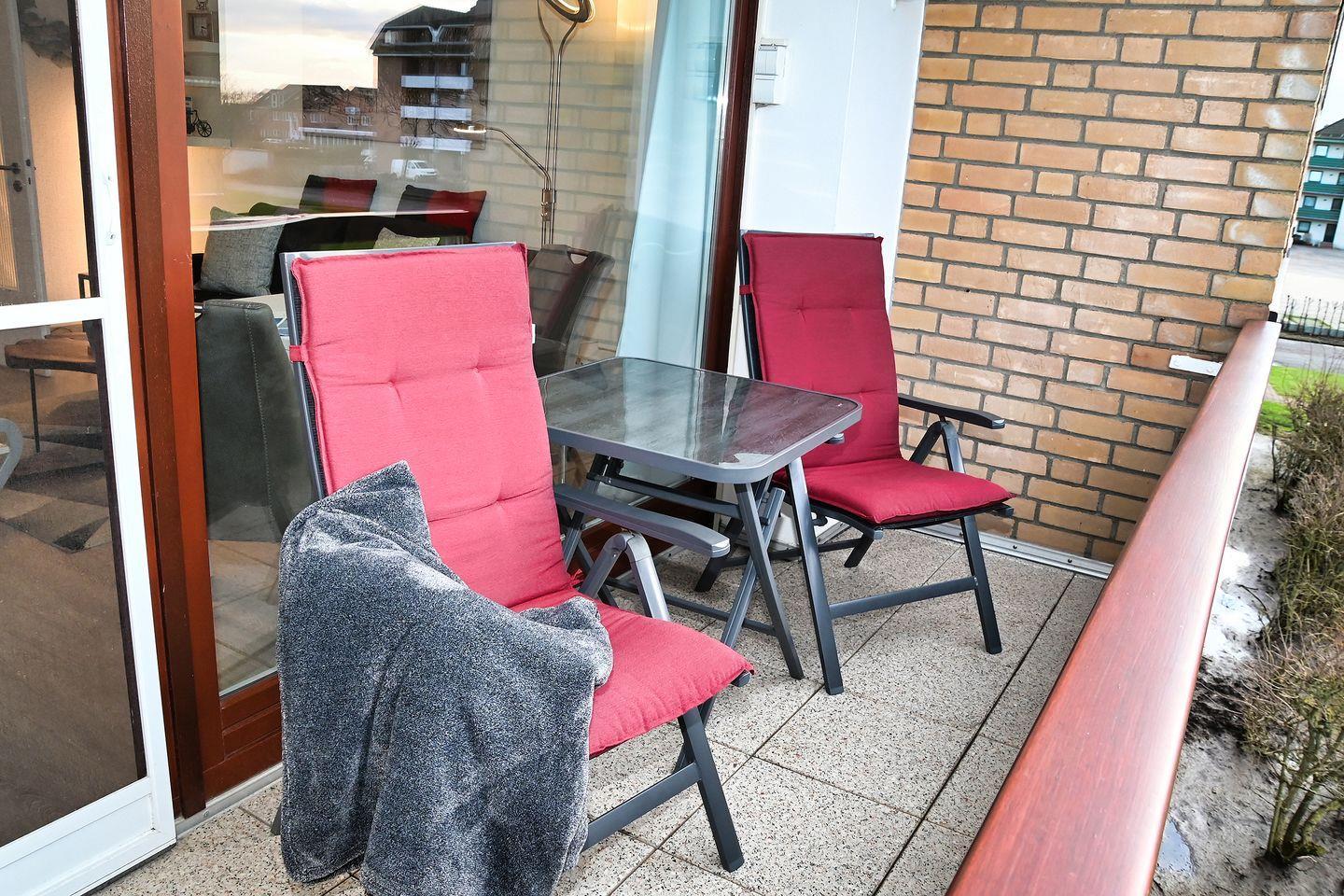 Die Ferienwohnung Watt'n Meer in Büsum bietet modernen Komfort und einen Balkon mit Südwest-Ausrichtung für entspannte Urlaubstage.
