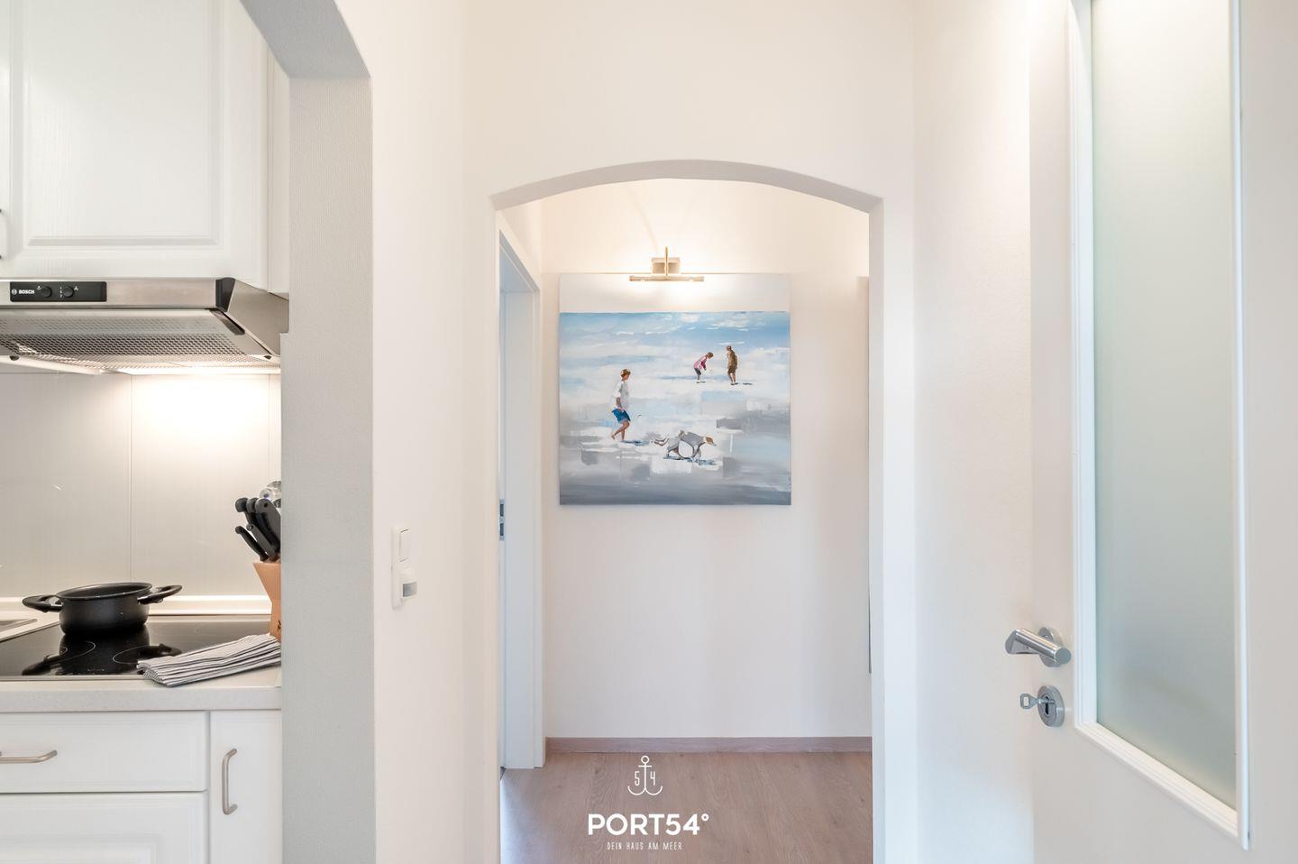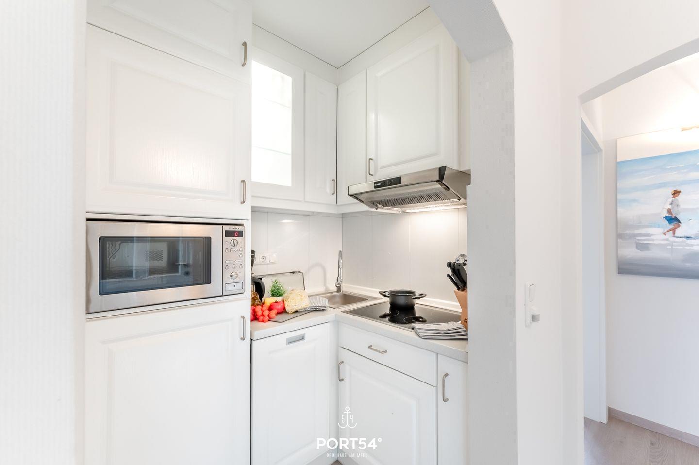Sowohl das Schlafzimmer, das Wohnzimmer als auch das Badezimmer sind mit elektrischen Rollläden ausgestattet – für ungestörte Ruhe und einen erholsamen Schlaf. Im Wohnzimmer sorgt ein Fernseher für Unterhaltung, und die voll ausgestattete Küche bietet alles, was Sie für einen gemütlichen Kochabend mit der Familie benötigen. Die Wohnung überzeugt durch ihre zentrale Lage – das Zentrum von Büsum ist in nur 10 Gehminuten erreichbar, und auch die Nordsee ist nur ca. 15 Minuten zu Fuß entfernt. Auf dem Balkon mit Tisch und Stühlen können Sie die frische Seeluft genießen und entspannte Stunden im Freien verbringen.