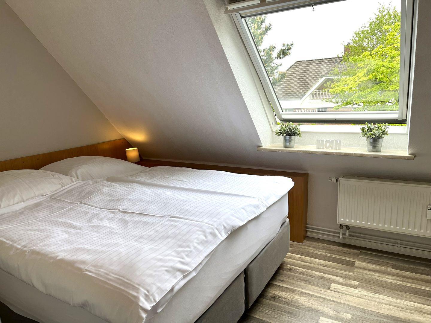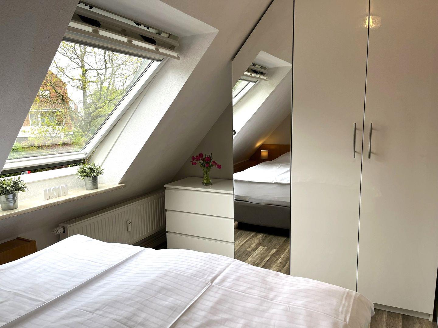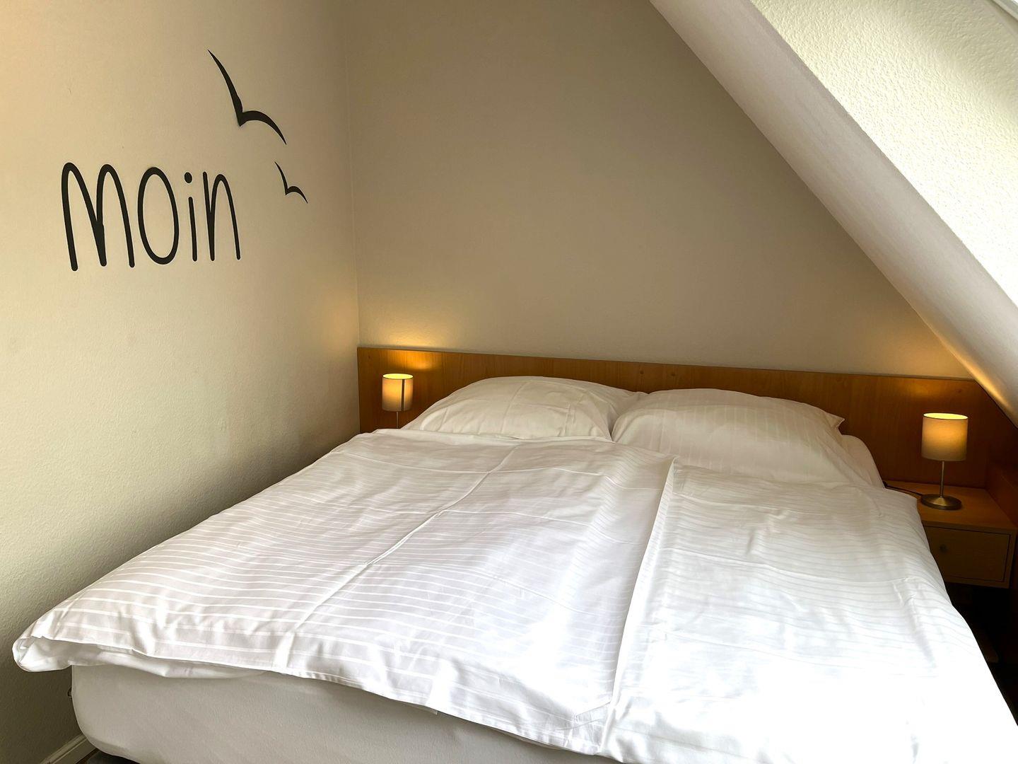 Im separaten Schlafzimmer befindet sich ein Boxspring- Doppelbett (1,60x 2m mit durchgehender Matratze und durchgehendem Topper)und ein großer Spiegelschrank für Ihre Urlaubsgarderobe. Für einen erholsamen Schlaf kann dieser Raum mit einem Veluxrollo komplett abgedunkelt werden.