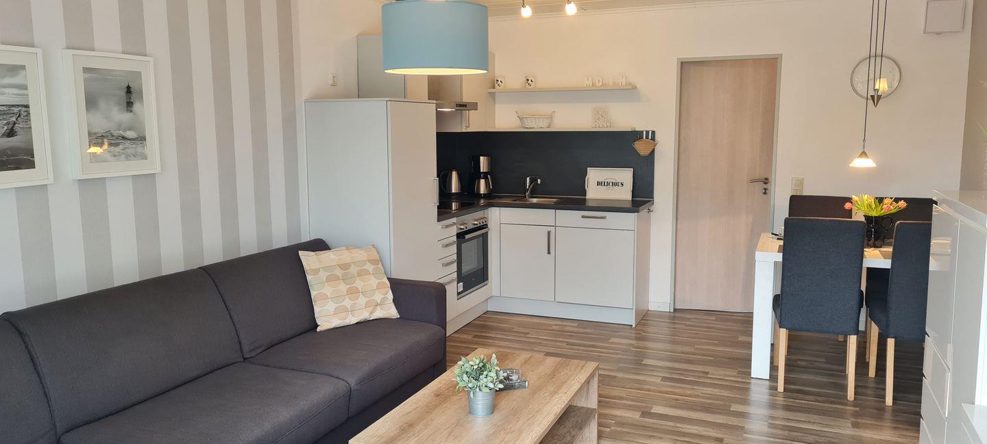 Gemütliche Ferienwohnung Deichläufer in ruhiger Lage nahe der Familienlagune Büsum, ideal für entspannte Tage an der Nordsee.