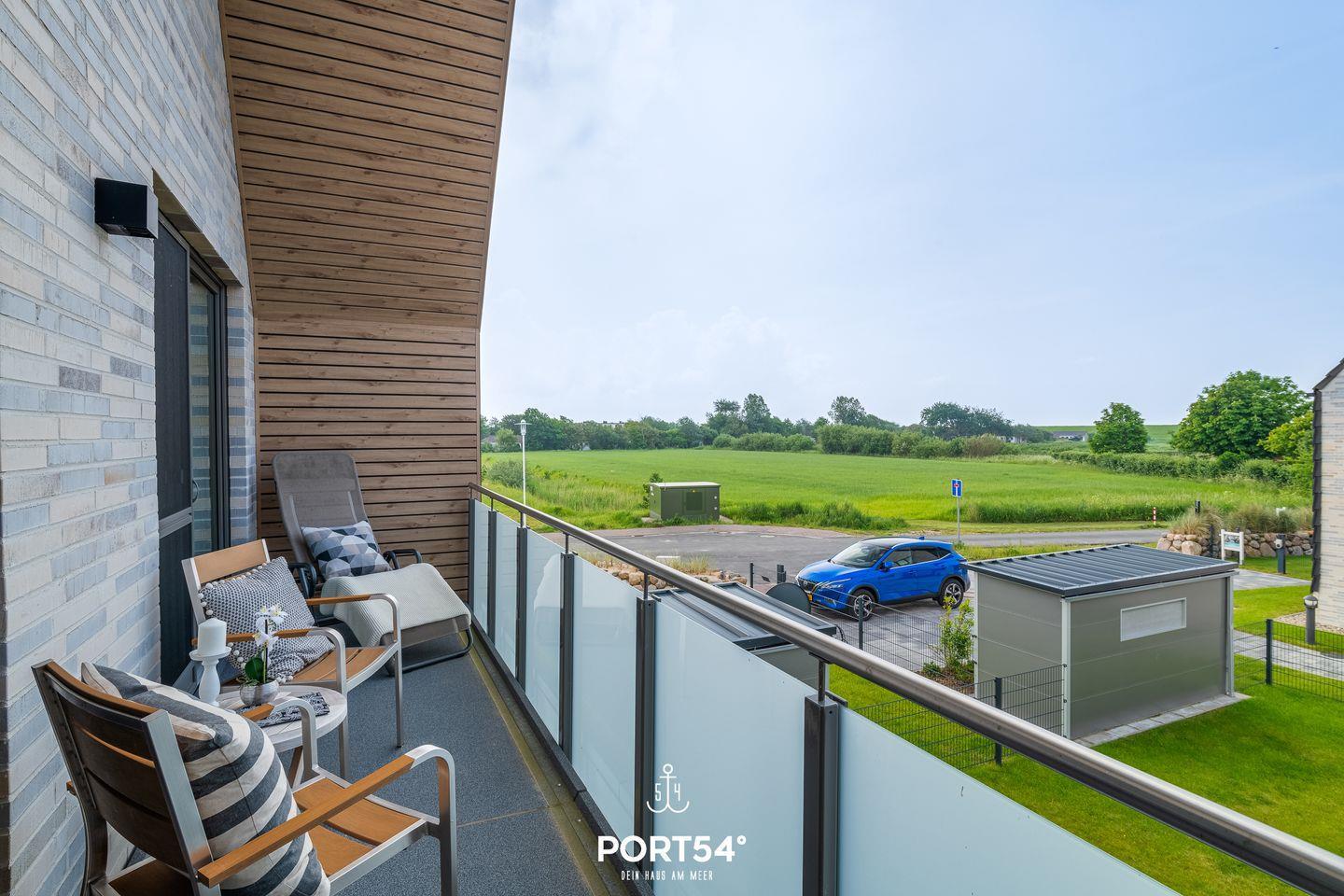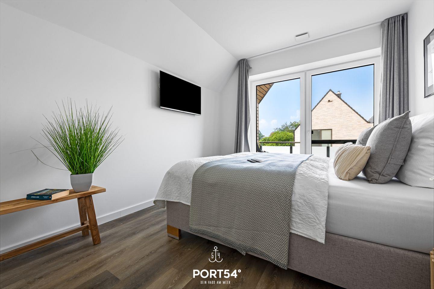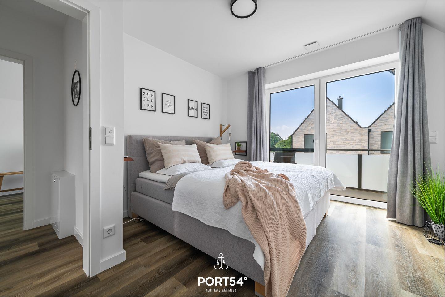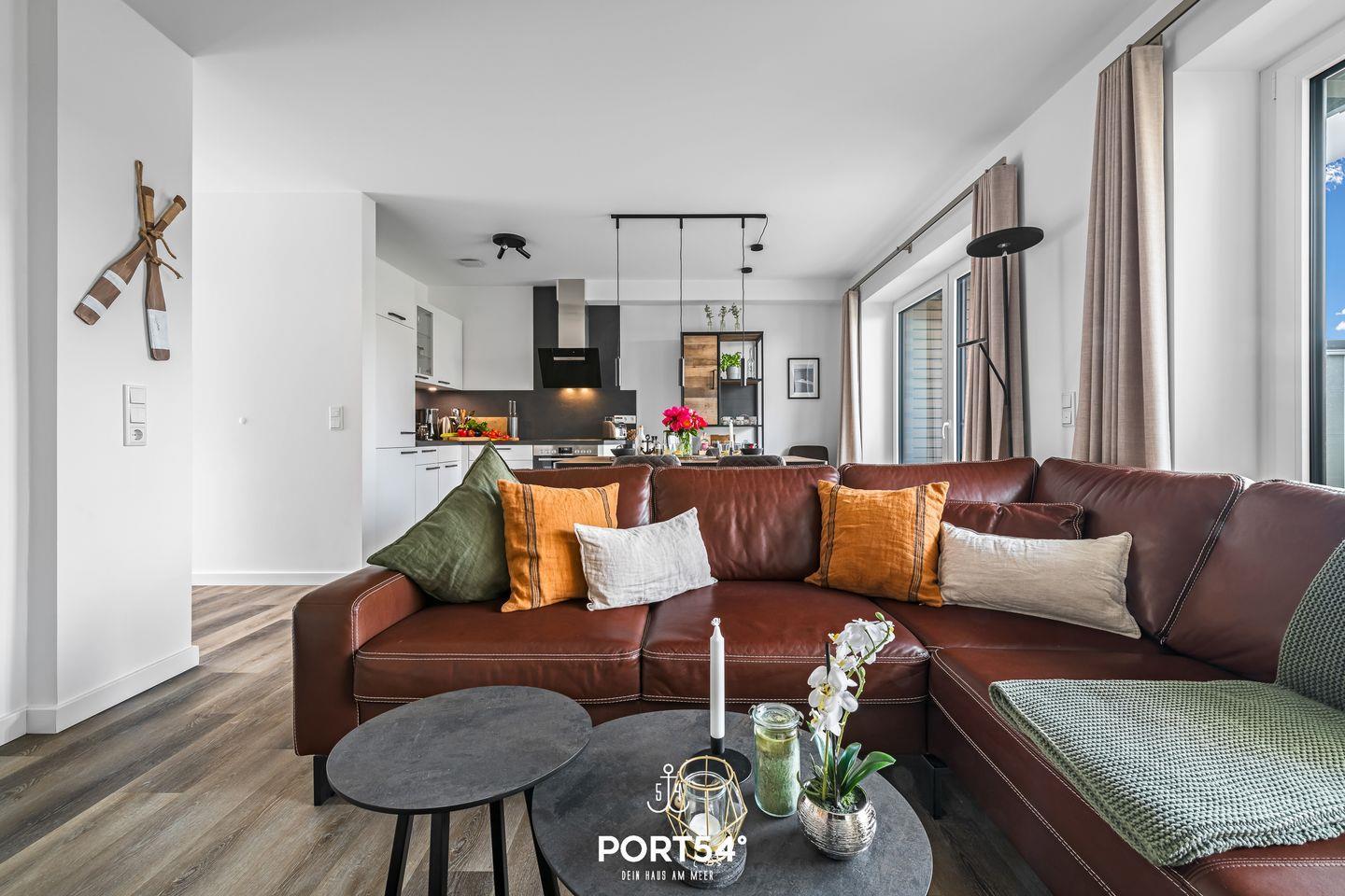 Über zwei Etagen bietet das Ferienhaus auf etwa 106 m² neben drei Schlafzimmern auch zwei Badezimmer, einen großen, lichtdurchfluteten Wohn- und Essbereich mit offener Küche, eine Terrasse und eine Loggia im Obergeschoss. Ein Stellplatz ist vorhanden, sowie als Highlight eine Sauna und en Kamin