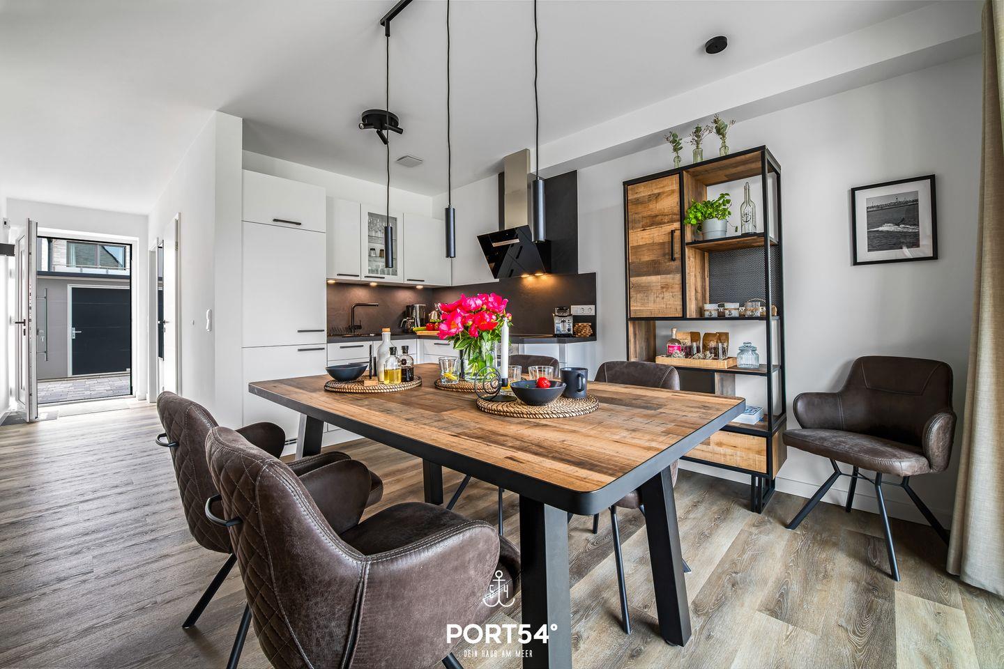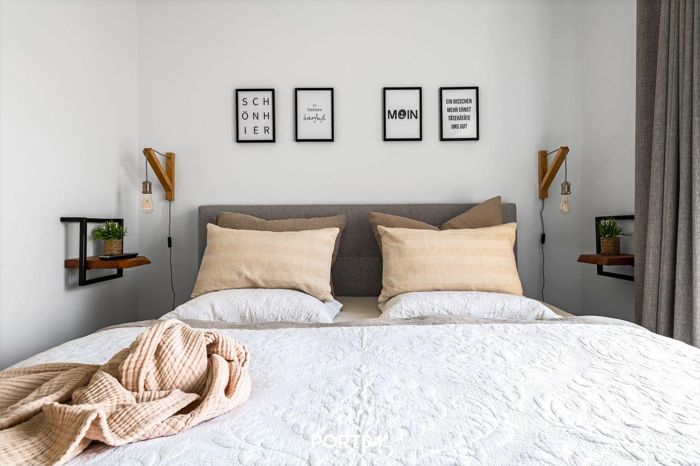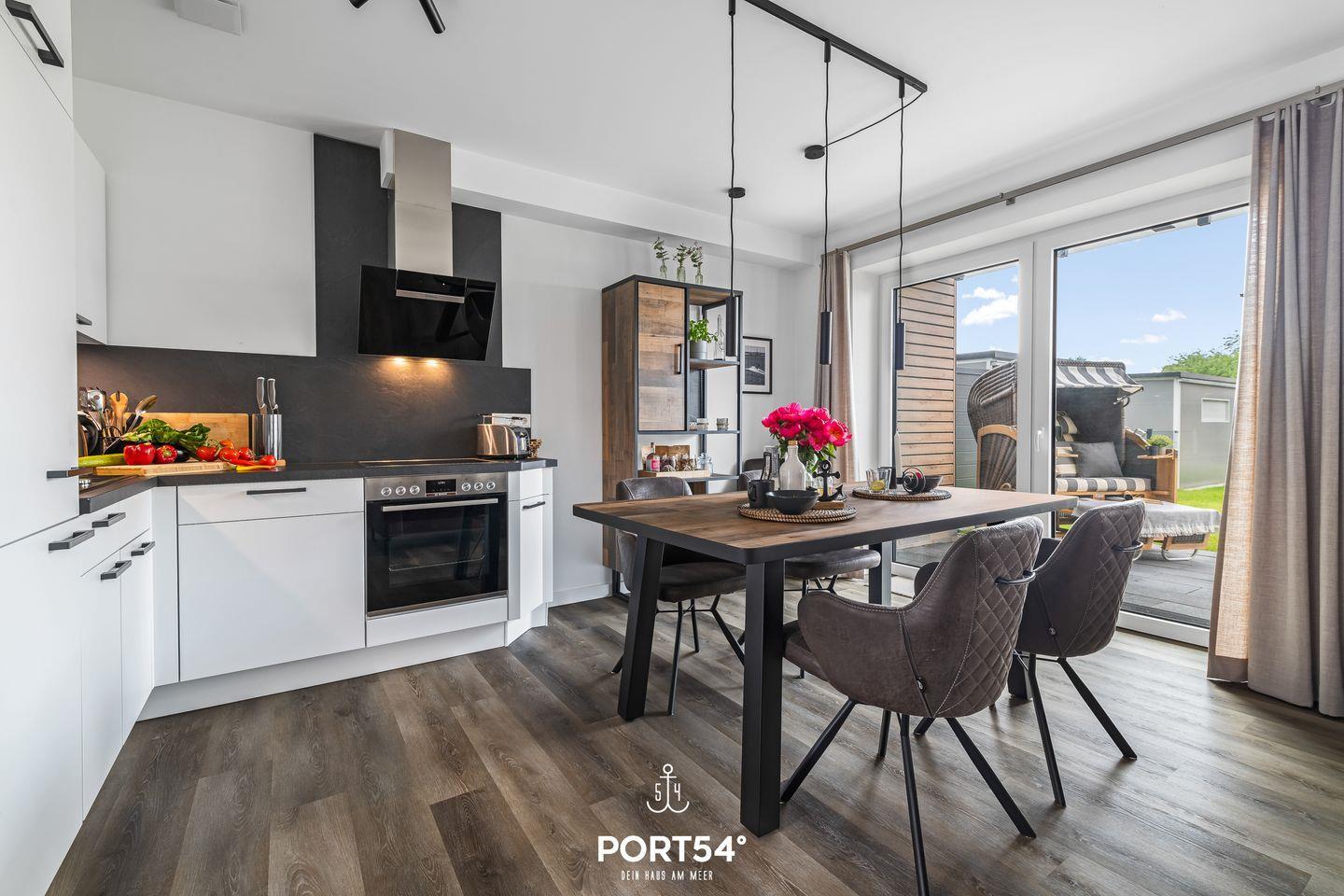 Das hochwertig ausgestattete Ferienhaus 'Küstenbude'', unweit der Nordsee gelegen, bietet auf zwei Etagen und 106 m² Platz für bis zu 6 Personen. Im Erdgeschoss bietet das Ferienhaus einen offenen Wohn- & Essbereich. In der Küche finden Sie alles, was Sie für einen Kochabend mit der ganzen Familie brauchen. Außerdem befindet sich im Erdgeschoss ein Schlafzimmer mit einem ausziehbaren Bett (140x200 cm) sowie ein Gäste-WC mit Toilette und Waschbecken. An Schmuddeltagen können Sie es sich vor dem Kamin gemütlich machen. Im Obergeschoss befinden sich zwei weitere Schlafzimmer, jeweils mit einem 180x200 cm großen Doppelbetten. Alle Schlafzimmer verfügen zudem über Flachbild-TV's, Insektenschutzgitter & Verdunkelungsmöglichkeiten. Erholsamer Schlaf ist hier garantiert. Das große Duschbad verfügt über eine ebenerdige Dusche sowie eine finnische Sauna. Perfekt um im Winter nach einem langen Spaziergang an der Nordsee zu entspannen und einfach mal die Seele baumeln zu lassen.