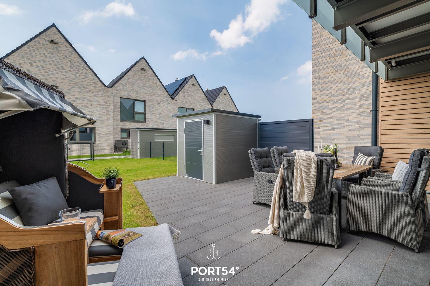 Laue Sommerabende auf der vollmöblierten Terrasse am Kohle-Grill, oder stürmische und kalte Tage am Kamin - dieses Haus bietet für jeden den perfekten Ort für einen Nordseeurlaub der Extraklasse. Auf der Terrasse können Sie es sich auch einfach im Strandkorb gemütlich machen.