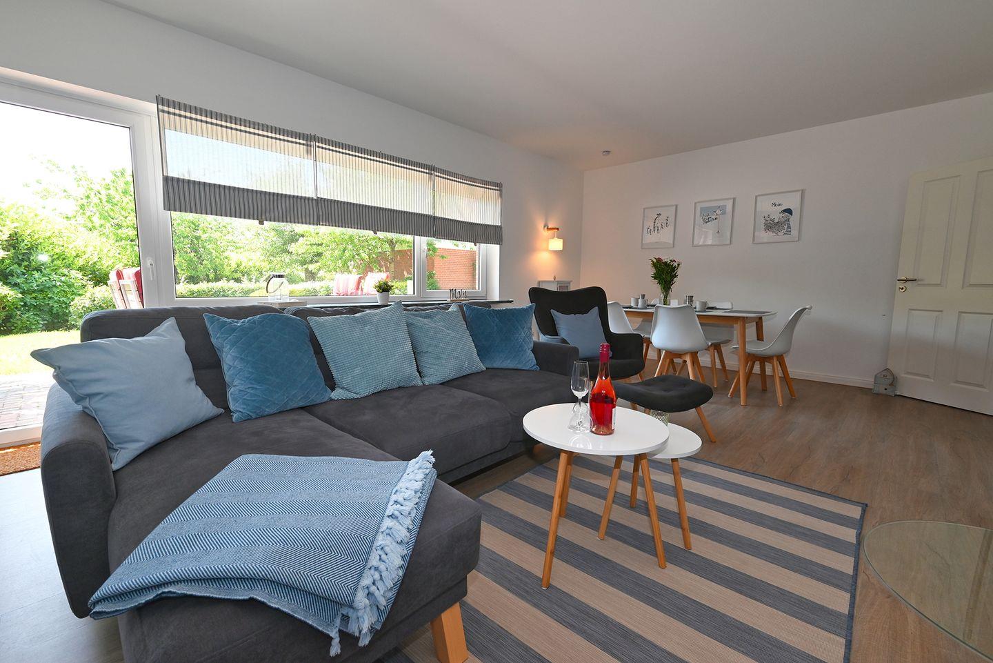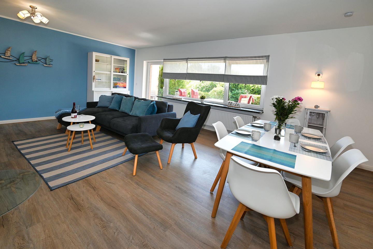 Die Ferienwohnung Wattkind in Büsum bietet eine nordisch eingerichtete Ruheoase mit Garten und Terrasse für Familien.