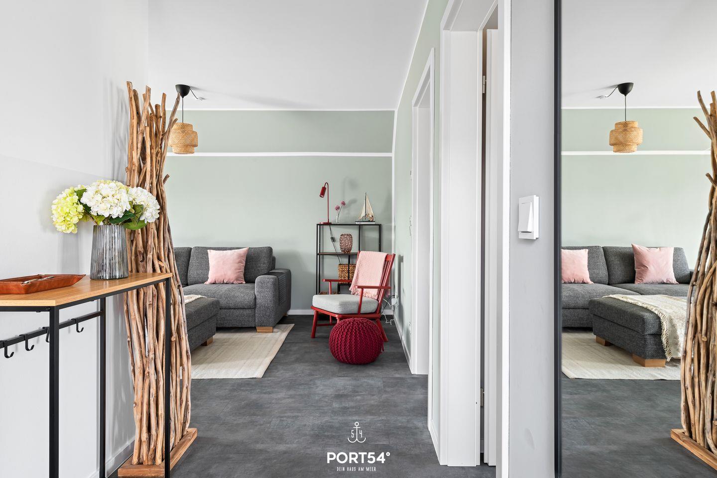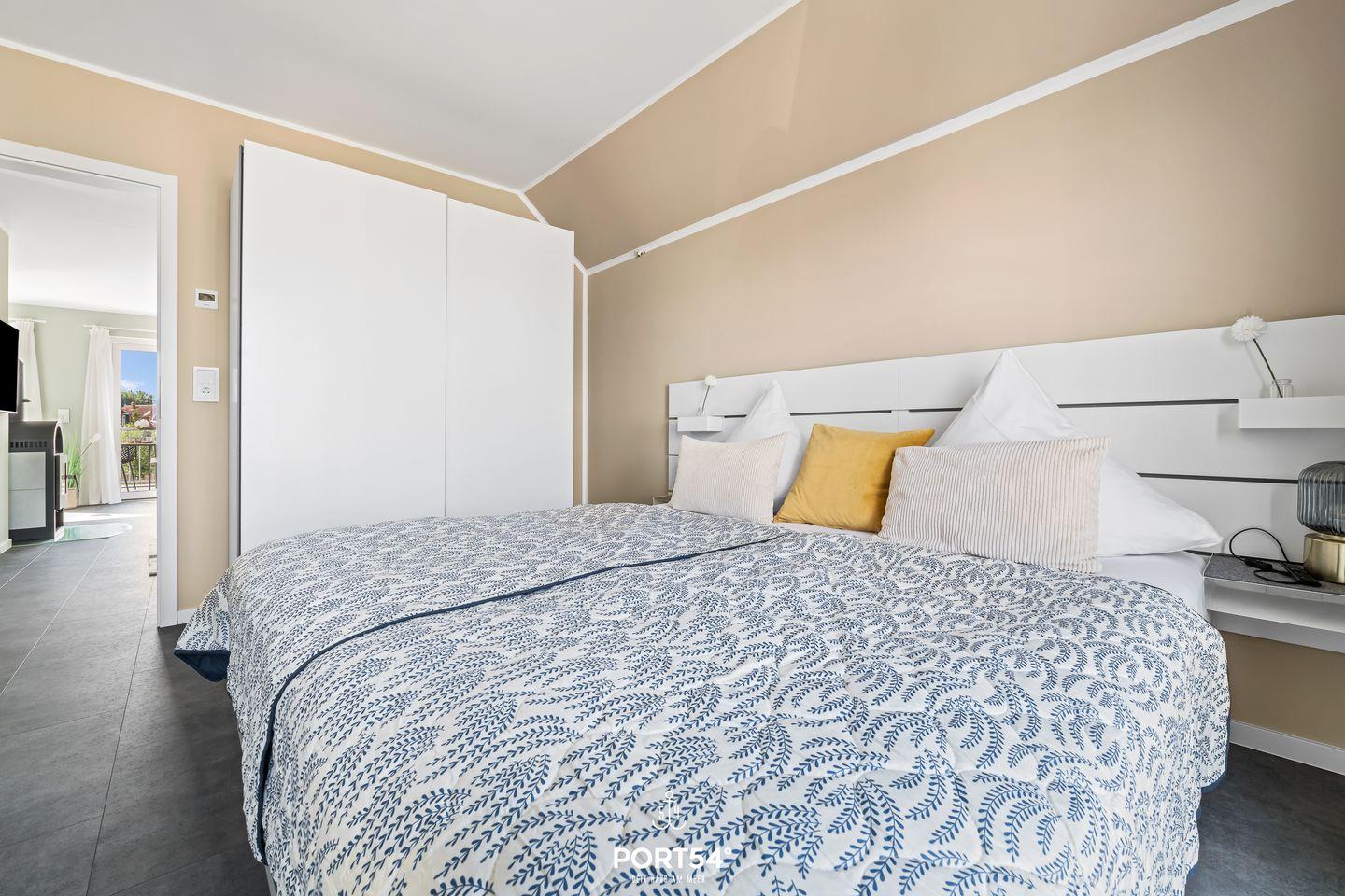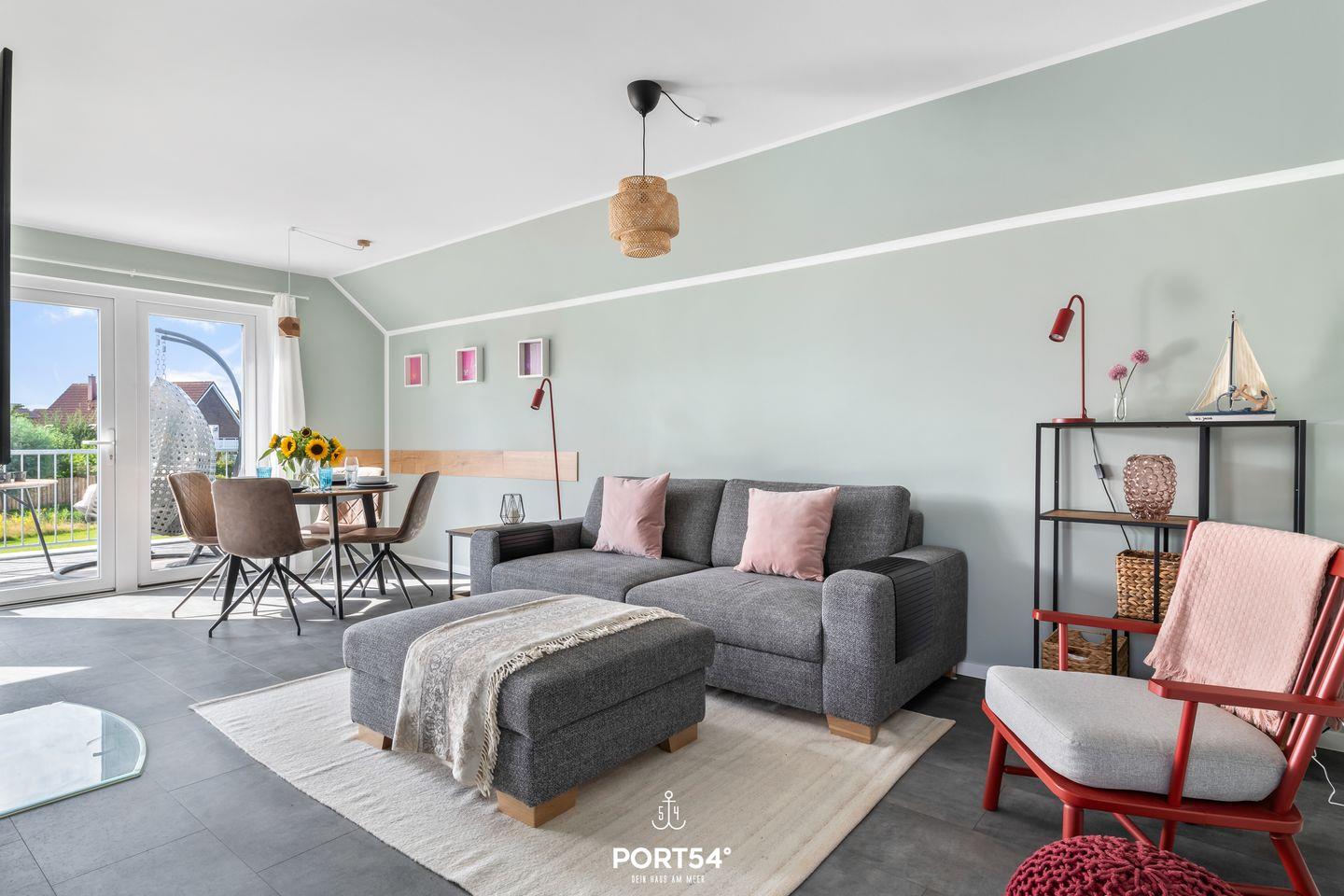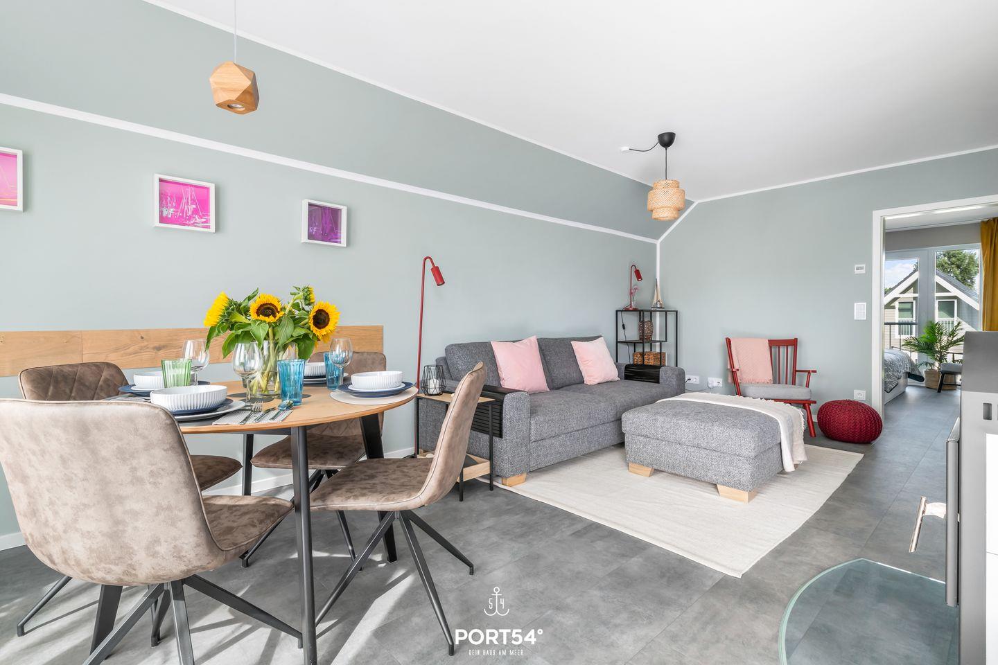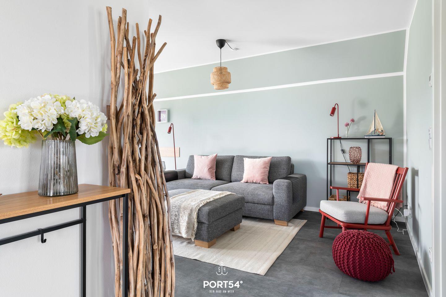 Modernes Ferienapartment in Büsum mit Kamin, Infrarotsauna und möbliertem Balkon für entspannte Nordseeaufenthalte.