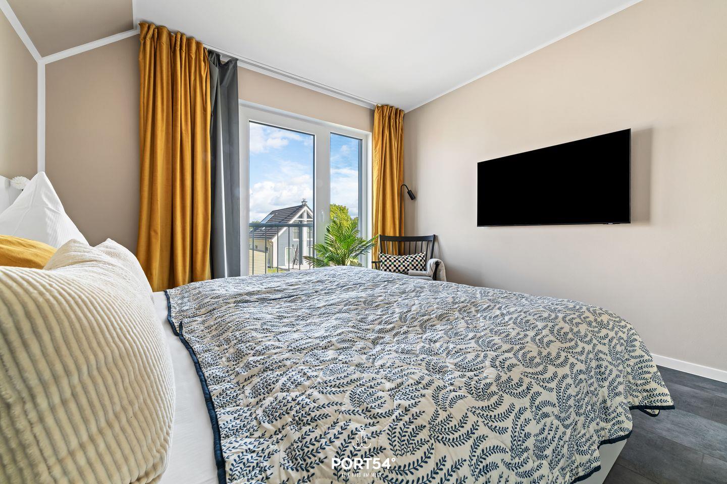 Die Wohnung Süderpiep im Nordsee Resort Büsum ist eine moderne und hochwertig eingerichtete Ferienwohnung, die Platz für bis zu 4 Personen bietet. Der offene Wohn-/Essbereich verfügt über einen gemütlichen Kamin, ideal für kuschelige Abende auf dem Sofa. Ein Smart-TV sorgt für Unterhaltung. Die Wohnung hat zwei Schlafzimmer, eines mit einem großen Doppelbett (180x 200 cm) und das andere mit zwei Einzelbetten (jeweils 90x 200 cm) für erholsamen Schlaf. Das Badezimmer mit Infrarot-Kabine bietet zusätzliche Entspannung. Vom Wohnzimmer aus gelangen Sie auf den möblierten Balkon, perfekt zum Sonnenbaden, für ein gemütliches Frühstück im Freien oder einfach zum ausspannen im Hängesessel für 2 Personen.