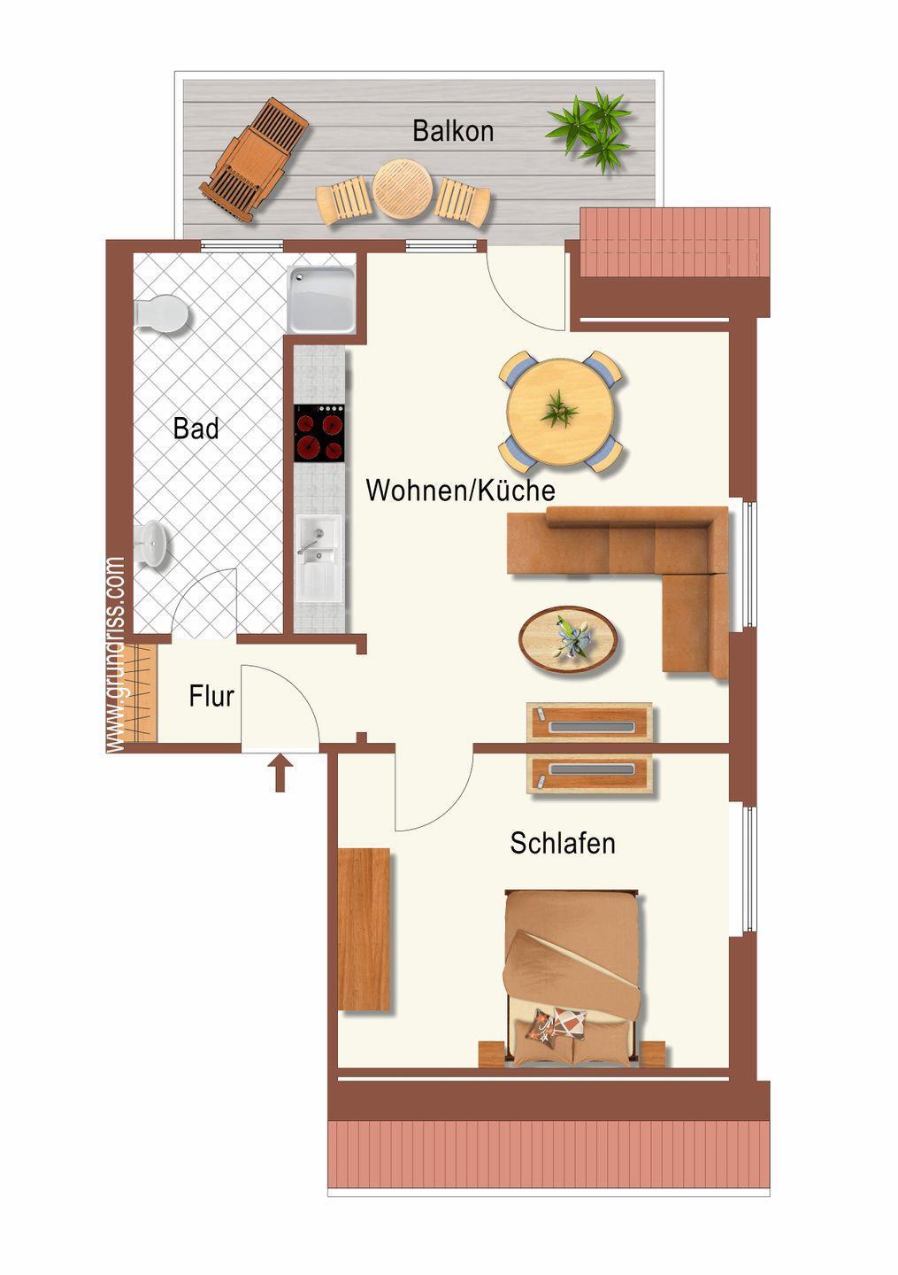 Das Bad verfügt über eine Dusche/WC. Vom Wohnbereich gelangen Sie auf den Balkon. Das Schlafzimmer verfügt über ein Doppelbett. Der Wohnung ist ein PKW - Stellplatz direkt am Haus zugehörig.