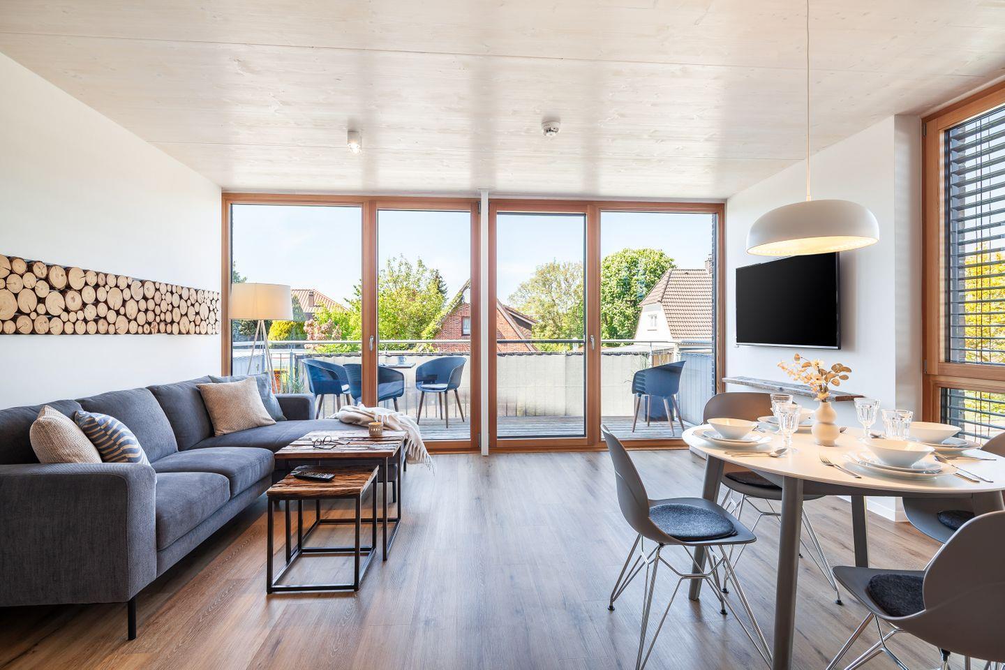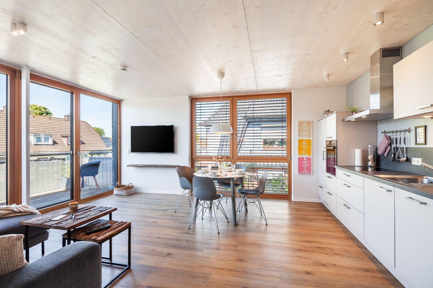 Im Architektenhaus Best Büsum wohnen Sie in der Wohnung Flut komfortabel komfortabel mit viel Platz – nah am Binnen-Deich, zentral und nur wenige Minuten zu Hafen, Bahnhof, Einkauf und Stadtzentrum.