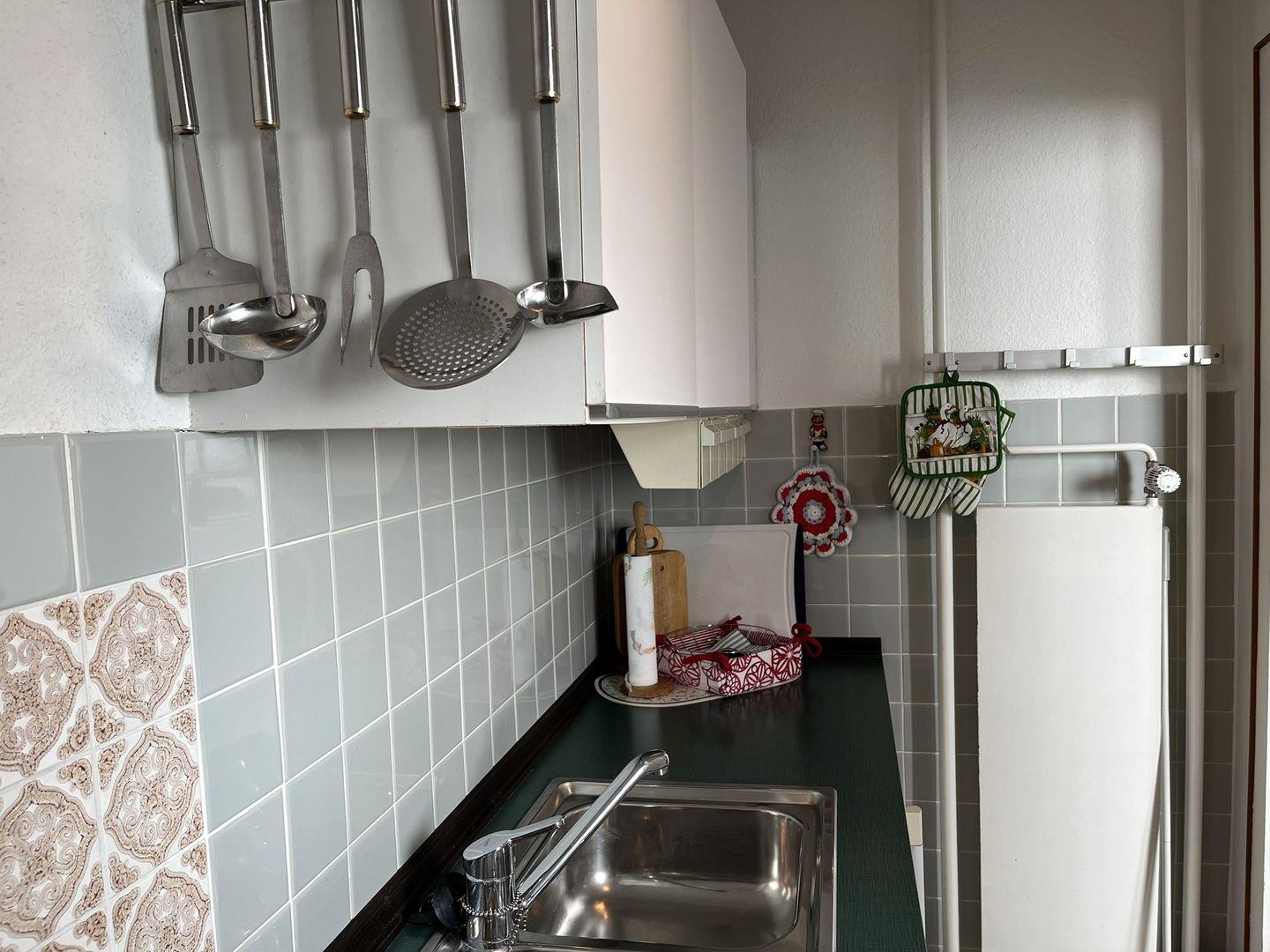 Eine kleine separate Küche ist mit einem 3- Platten Herd mit Backofen, Mikrowelle und Kühlschrank mit Gefrierfach ausgestattet. Eine Kaffeemaschine und ein Toaster sind nur einige der Küchengeräte, die vorhanden sind.