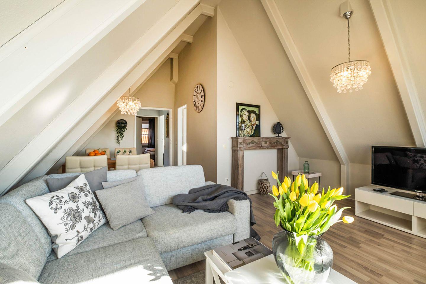 Die Ferienwohnung liegt im Dachgeschoss und verfügt über keinen eigenen Balkon.