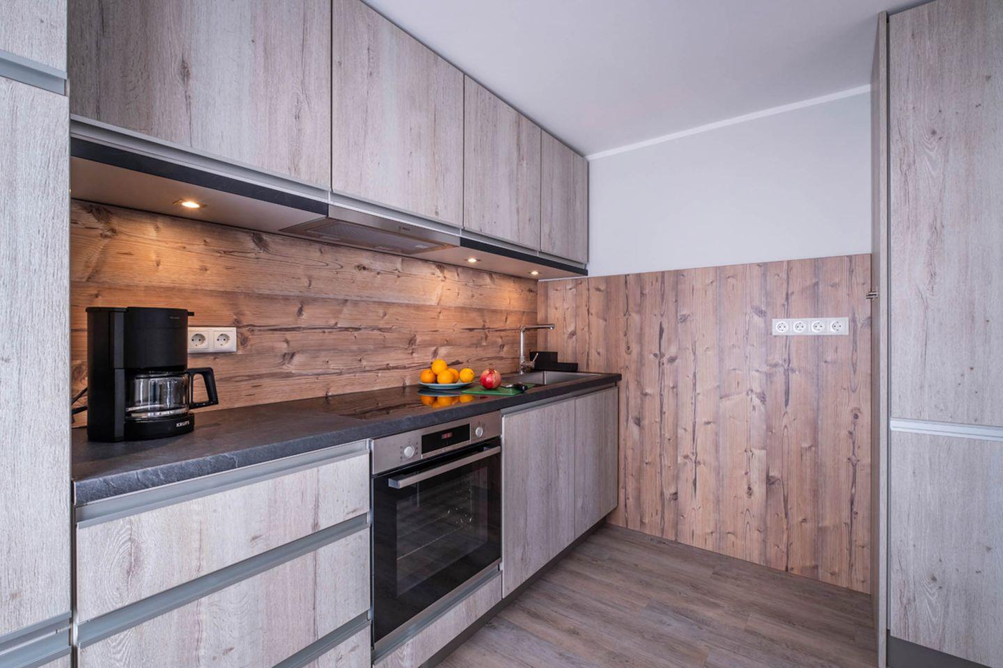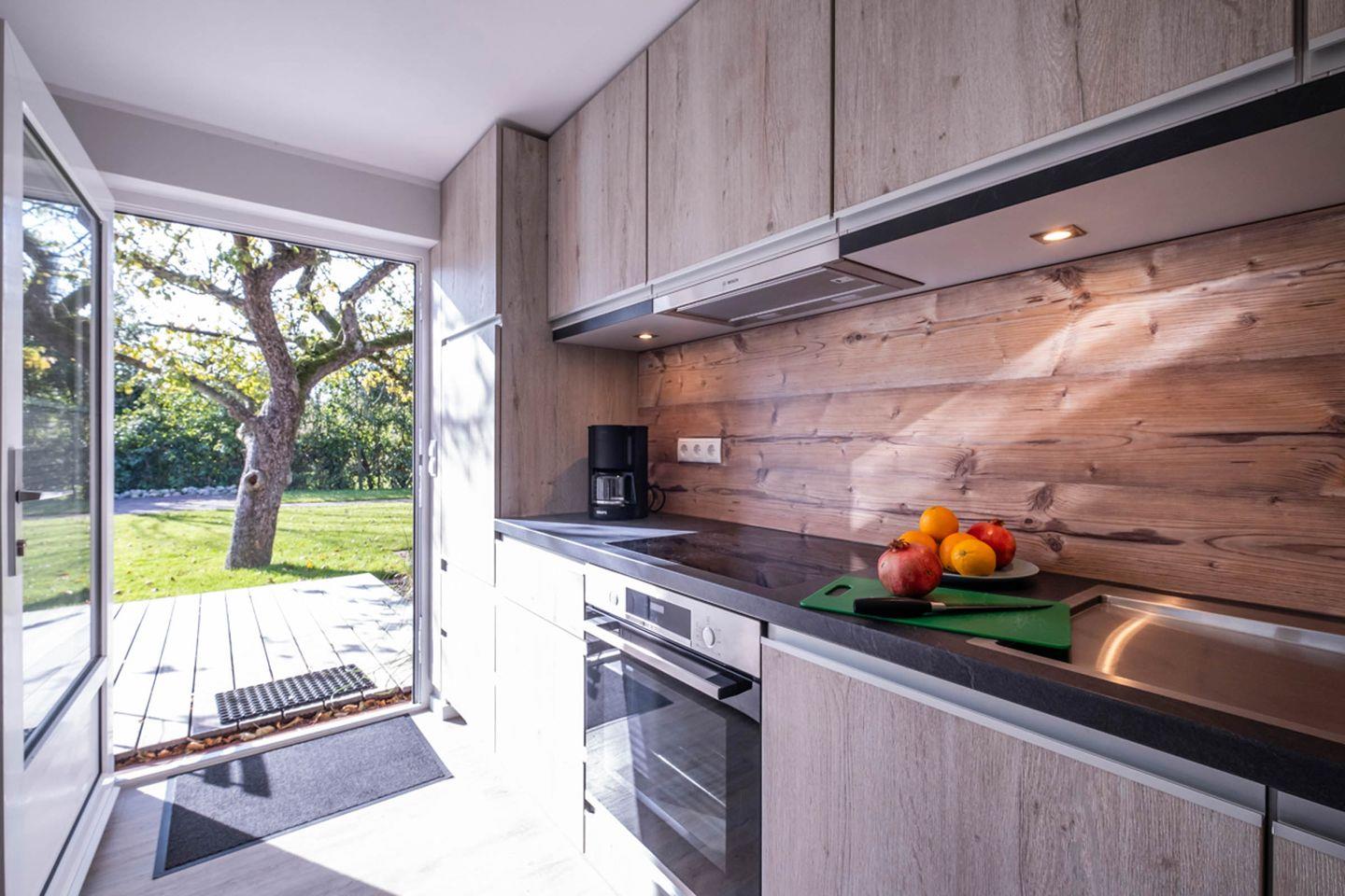 Die Ausstattung der Küche umfasst unter anderem einen Induktionsherd, einen Backofen, einen Kühlschrank mit Gefrierfach sowie eine Spülmaschine. Dank einer Vielzahl von Küchenutensilien, einer Kaffeemaschine, Toaster und einem Wasserkocher können Sie sich hier auch gut selbstverpflegen in Ihrem Urlaub.
