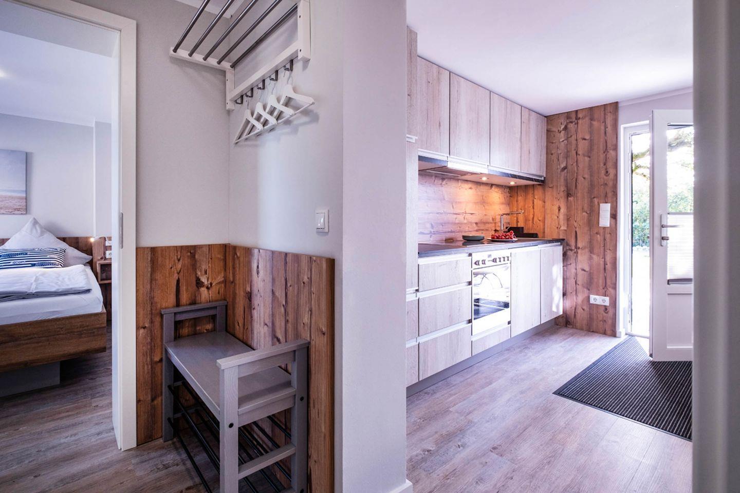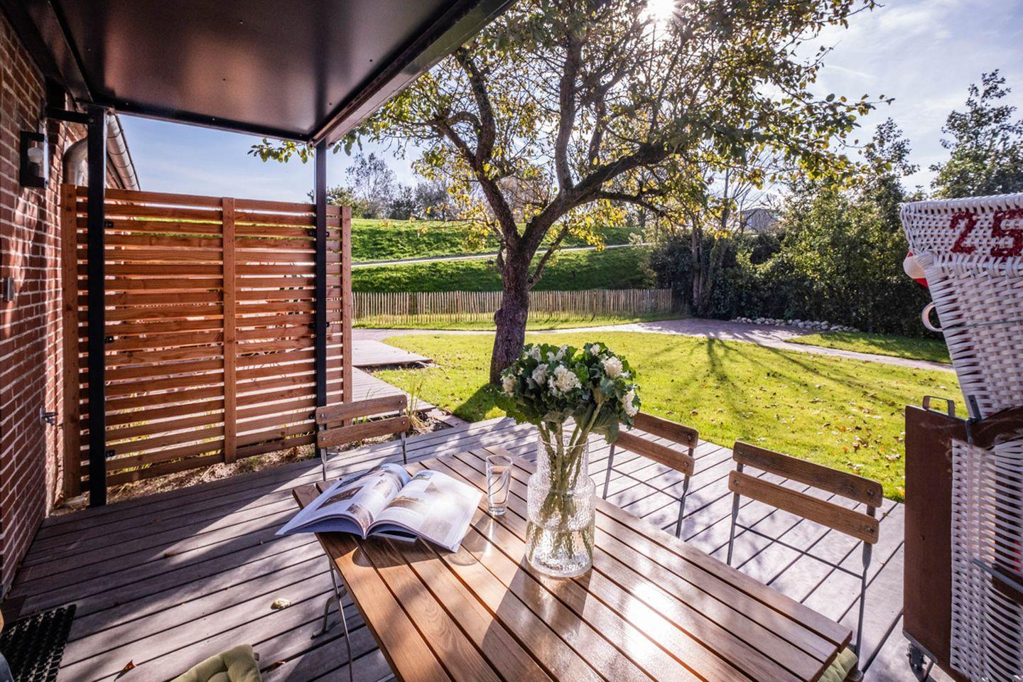 Willkommen in der gemütlichen Ferienwohnung „Goordenuv“, einem einladenden Rückzugsort in Büsum, direkt am Deichaufgang, der perfekte für Platz für einen erholsamen und entspannten Familienurlaub. Mit einer idealen Größe von ca. 40 m² bietet diese charmante Unterkunft Platz für bis zu vier Personen, Die Wohnung befindet sich im Erdgeschoss eines gepflegten Hauses mit einem schönen Ambiente. Hier können Sie auf der großen Holzterrasse, im Garten unter dem großen alten Apfelbaum entschleunigen. Hier sind Sie ganz ungestört. Für jedes Familienmitglied findet sich ein Plätzchen zum Erholen. Der gemütlich eingerichtete Wohnbereich mit Sofa und Sessel, Fernseher, Spielen, Büchern sowie Stühlen und Tisch und offener Küche lädt zum Entspannen, Spielen oder Kochen ein. Die hochwertige Ausstattung der modernen Küche umfasst unter anderem ein Induktionskochfeld, einen Backofen, einen Kühlschrank mit Gefrierfach sowie eine Spülmaschine. Dank einer Vielzahl von Küchenutensilien, einer Kaffeemaschine, Toaster und einem Wasserkocher können Sie Ihre Lieblingsgerichte im Handumdrehen zubereiten und durch den direkten Ausgang auf die einladende Südwest-Terrasse kann der Tag gleich mit einem schönen und gemütlichen Frühstück im Garten starten und Pläne für den Tag geschmiedet werden oder die Kinder gehen schnell über den Deich auf den großen Spielplatz zum Toben. Weiter befinden sich in der Wohnung ein Schlafzimmer mit Doppelbett (180x200cm) und Fernseher, ein Zimmer mit Etagenbett (100x200cm) mit großem Kleiderschrank. Das moderne Tageslicht-Bad ist mit einer bodengleichen Dusche, einem Waschbecken und einem WC ausgestattet sowie einem Handtuchheizkörper und vielen Ablagemöglichkeiten. Es bietet alles, was Sie für einen erfrischenden Start in den Tag benötigen. Alle Zimmer verfügen über eine Fußbodenheizung