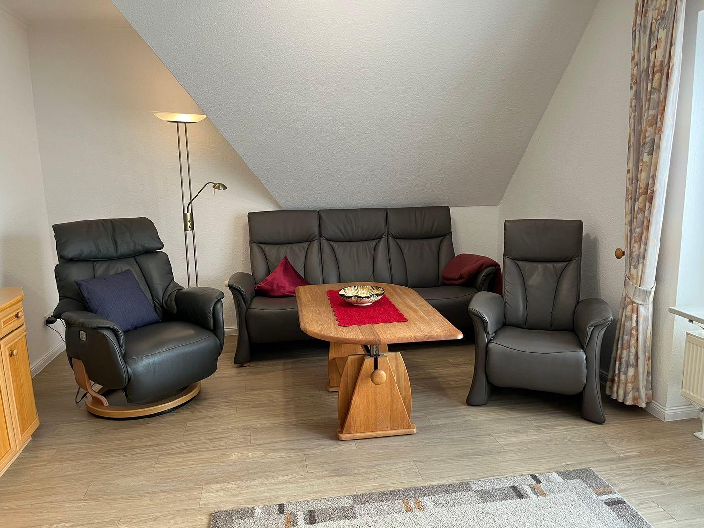 In dem Wohnraum können Sie es sich auf dem bequemen Sofa oder den Fernsehsesseln, einer davon motorisiert, so richtig gemütlich machen.