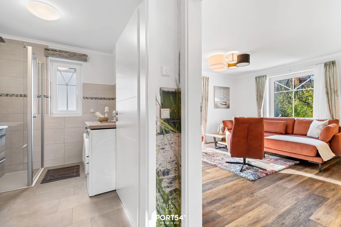 Zu den weiteren Annehmlichkeiten zählen ein eigener Parkplatz direkt vor der Tür sowie eine Waschmaschine im Haus.