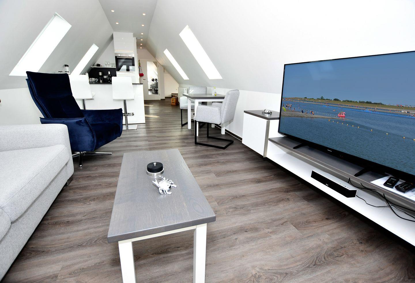 Genießen Sie im Insel Feeling Penthouse in Büsum stilvollen Komfort mit Meerblick und nur 400 m vom Strand entfernt.