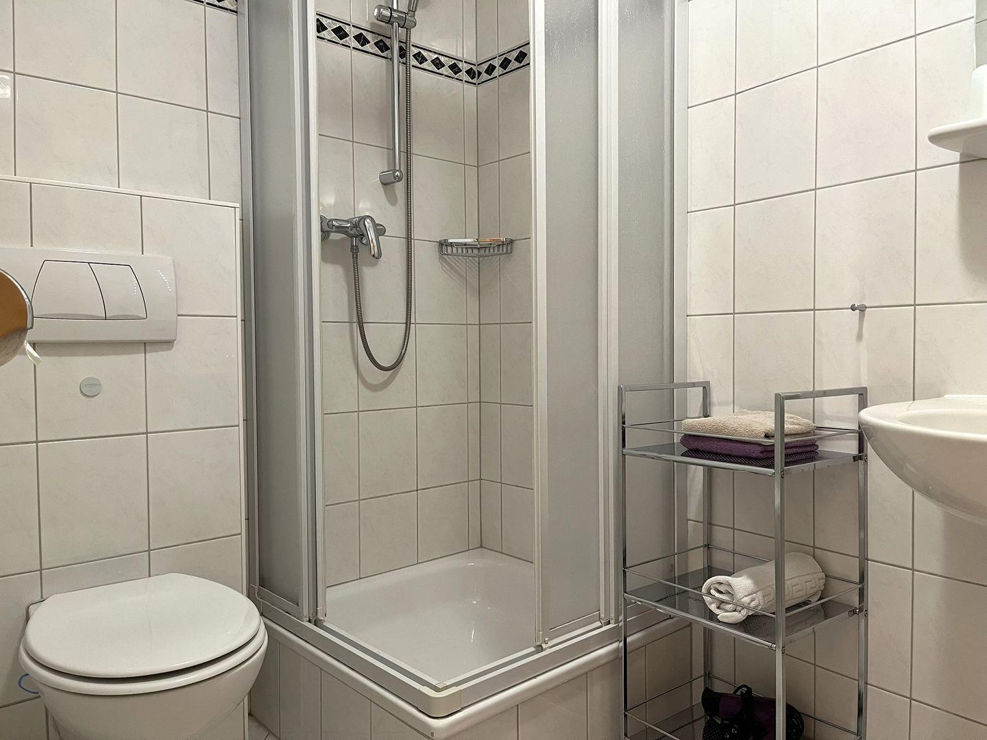 Ein Schlafzimmer, ebenfalls Laminatboden, sorgt für erholsame Nächte. Das Badezimmer ist mit einer modernen Dusche, WC, Haartrockner und Spiegel ausgestattet, damit Sie erfrischt in den Tag starten können. Die gesamte Wohnung bietet einen Sichtschutz für alle Fenster, damit Sie ungestört die Ruhe genießen können.