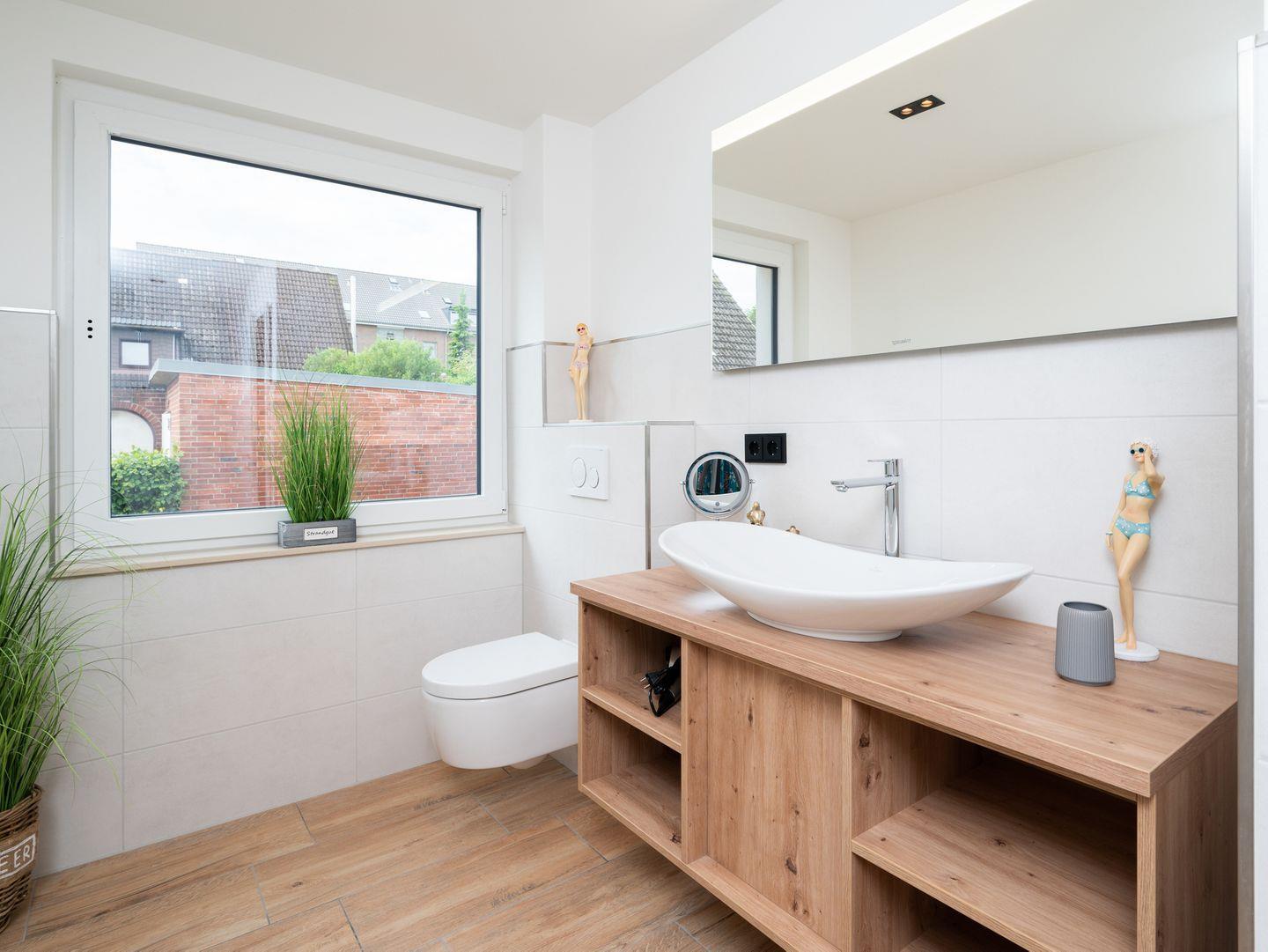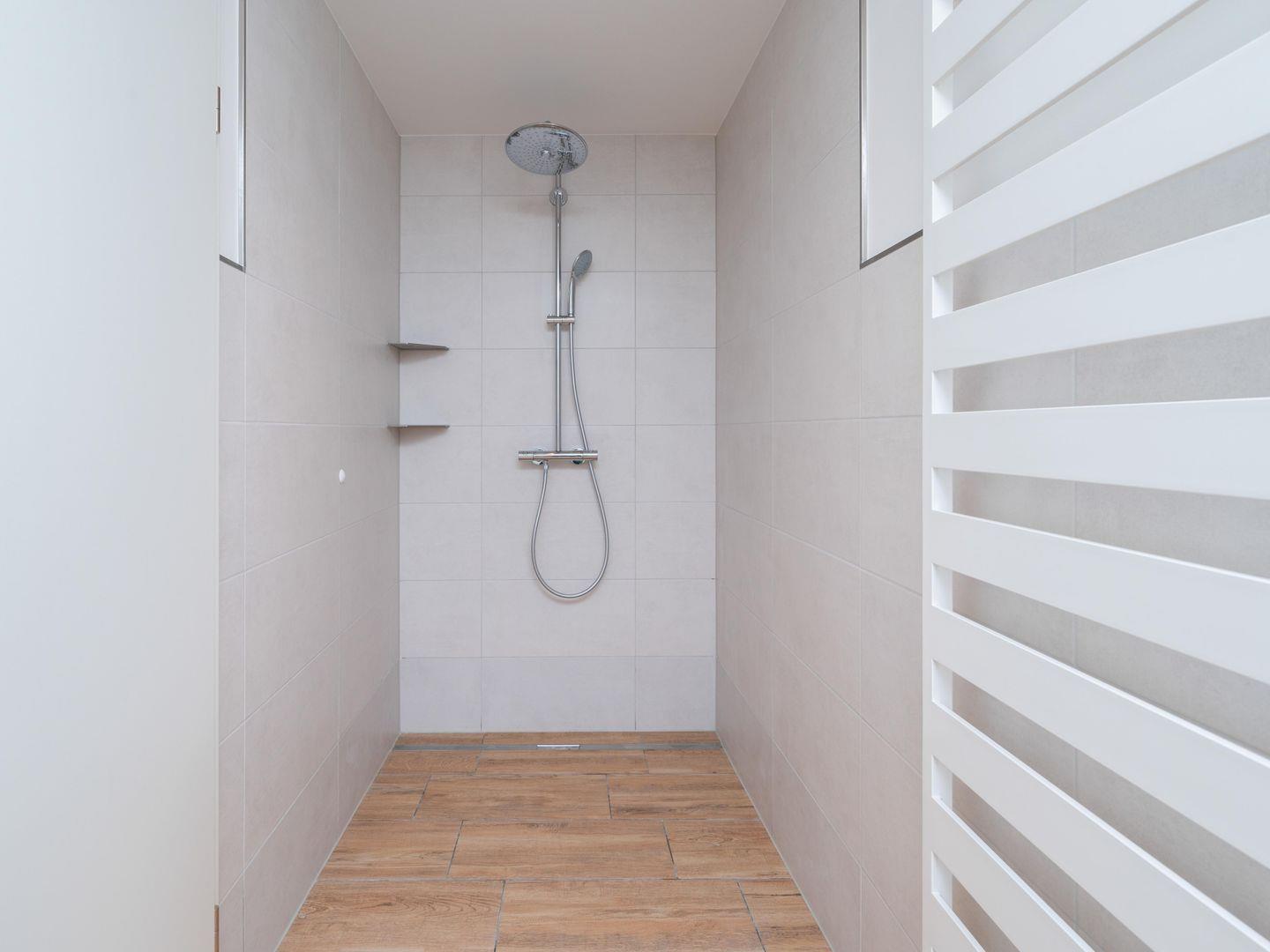 Das Badezimmer ist ebenfalls auf dem neuesten Stand der Technik und bietet eine bodengleich Dusche, ein Waschbecken mit Spiegel und einen Haartrockner. Die Fußbodenheizung sorgt auch in kühleren Monaten für ein behagliches Wohngefühl.
