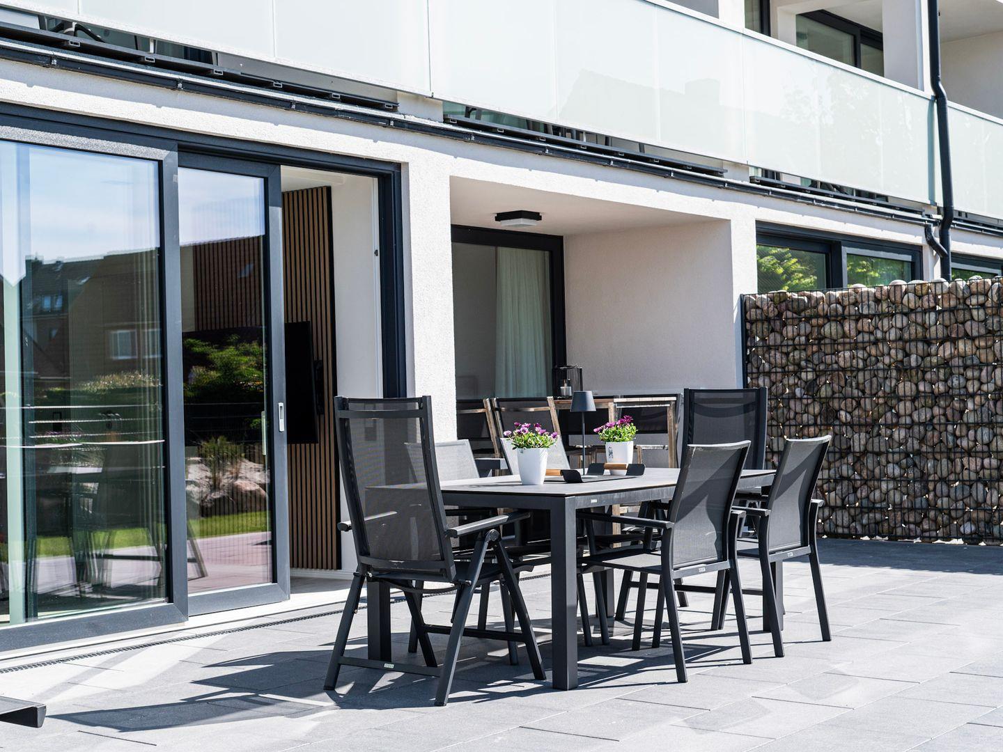 Moderne Ferienwohnung mit großer Terrasse, Außendusche und nahe dem Strand in Büsum für bis zu 6 Personen.