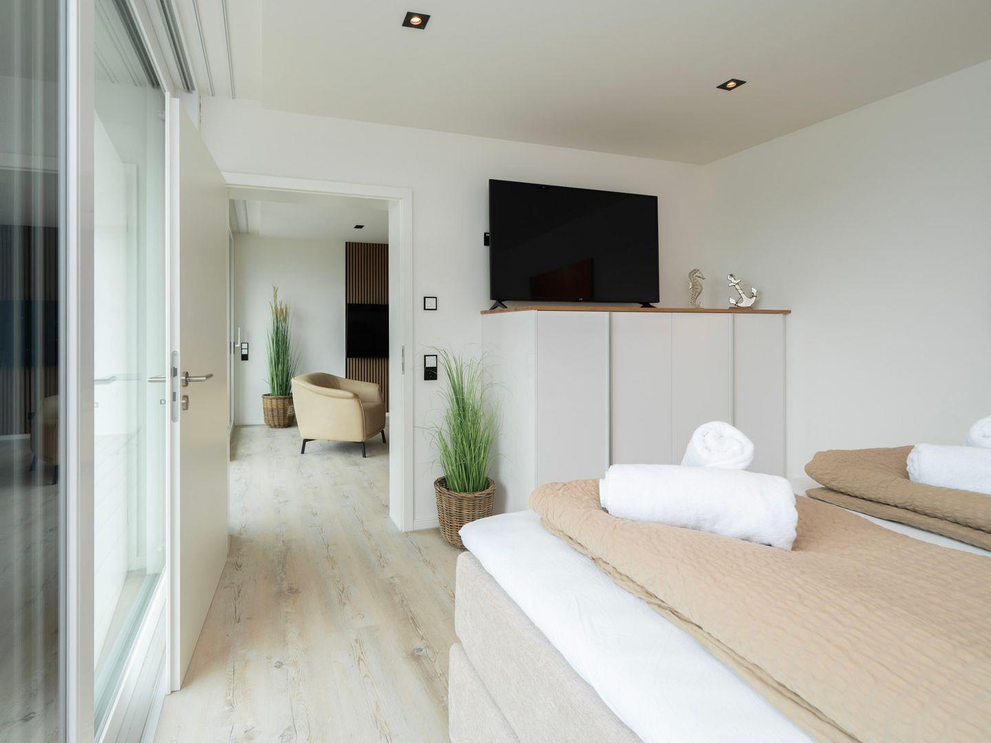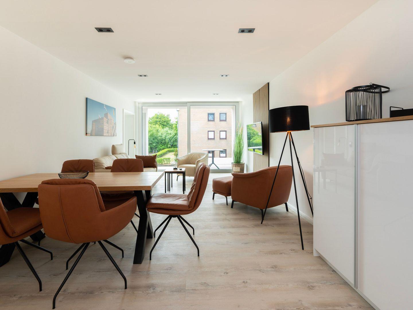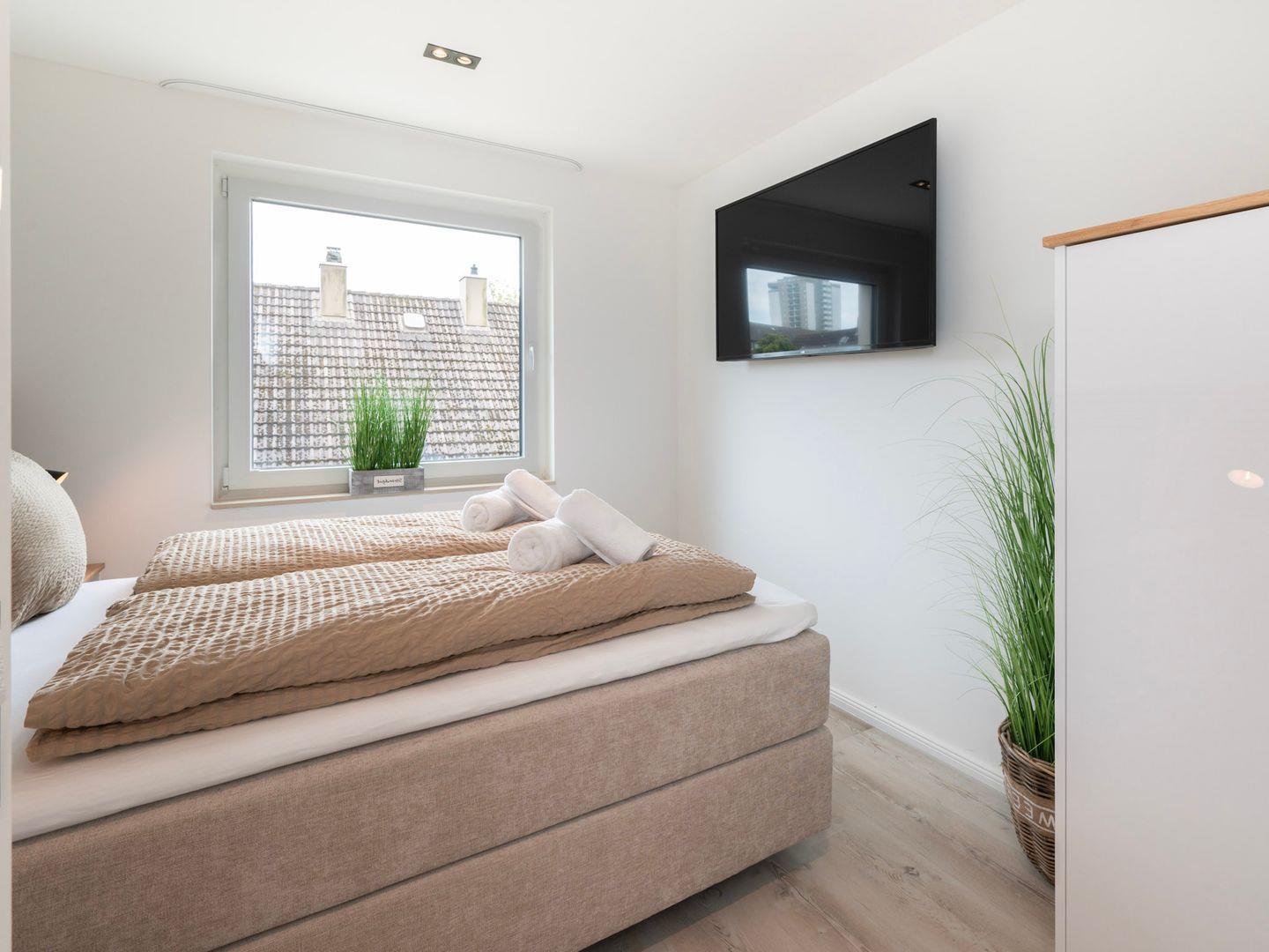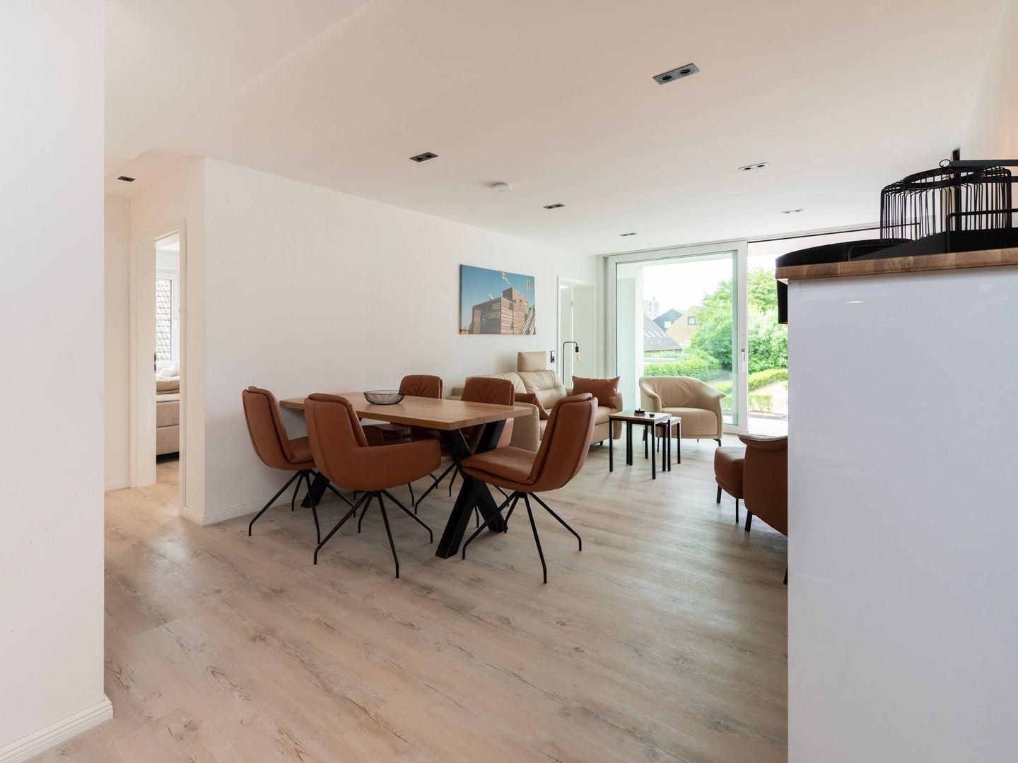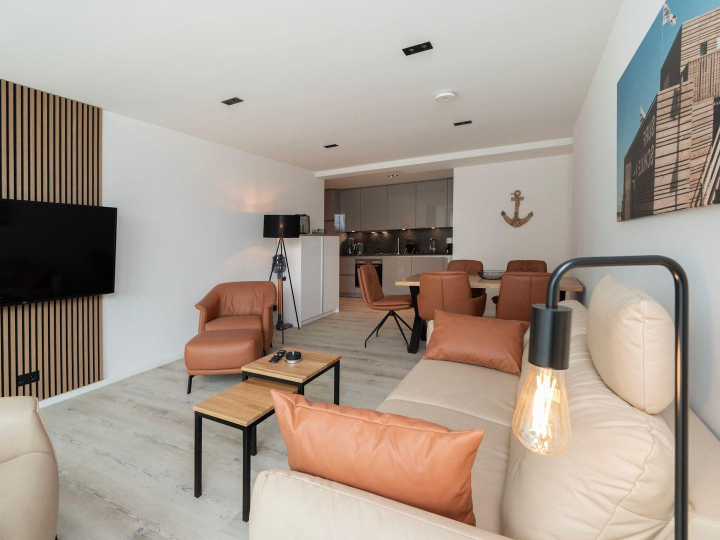 Die Wohnung verfügt über zwei einladende Schlafzimmer, die durch eine Allergiker geeignete Ausstattung auch für Allergiker eine erholsame Nachtruhe versprechen. In der offenen Küche, die zum gemütlichen Wohnzimmer hin übergeht, können Sie kulinarische Köstlichkeiten zubereiten. Hier stehen Ihnen moderne Geräte wie ein Cerankochfeld, Backofen, Spülmaschine sowie diverse Küchenutensilien zur Verfügung. Genießen Sie Ihre Mahlzeiten am großen Esstisch oder entspannen Sie auf der Sofaecke, während Sie die Unterhaltung am auf einem der drei TV genießen. WLAN ist in der gesamten Wohnung verfügbar, sodass Sie auch im Urlaub immer online bleiben können.