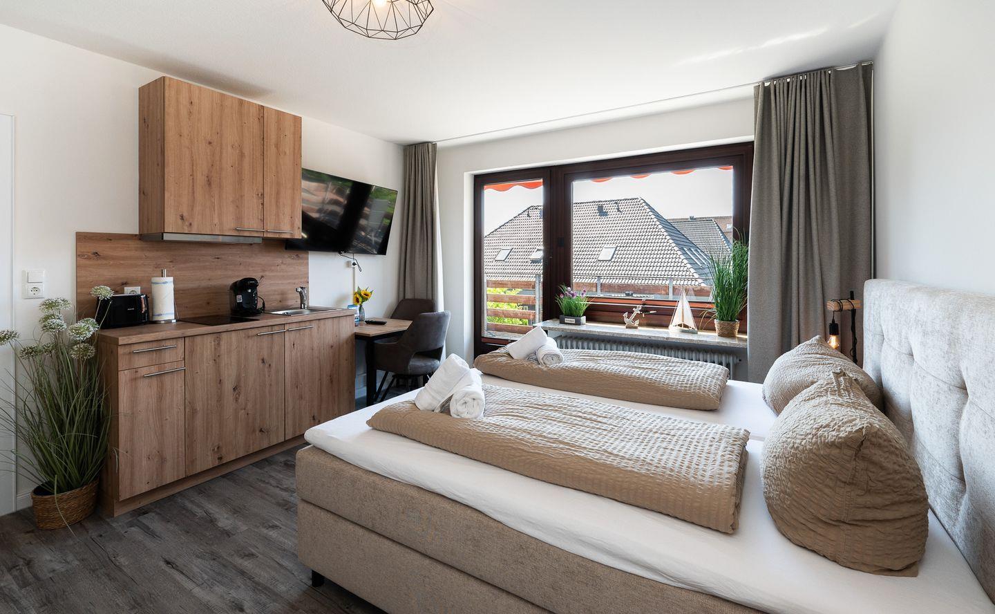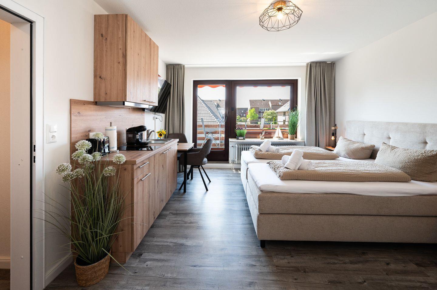 Charmantes Apartment in Büsum mit Balkon, moderner Kochnische und Nähe zum Strand für erholsame Nordsee-Tage.