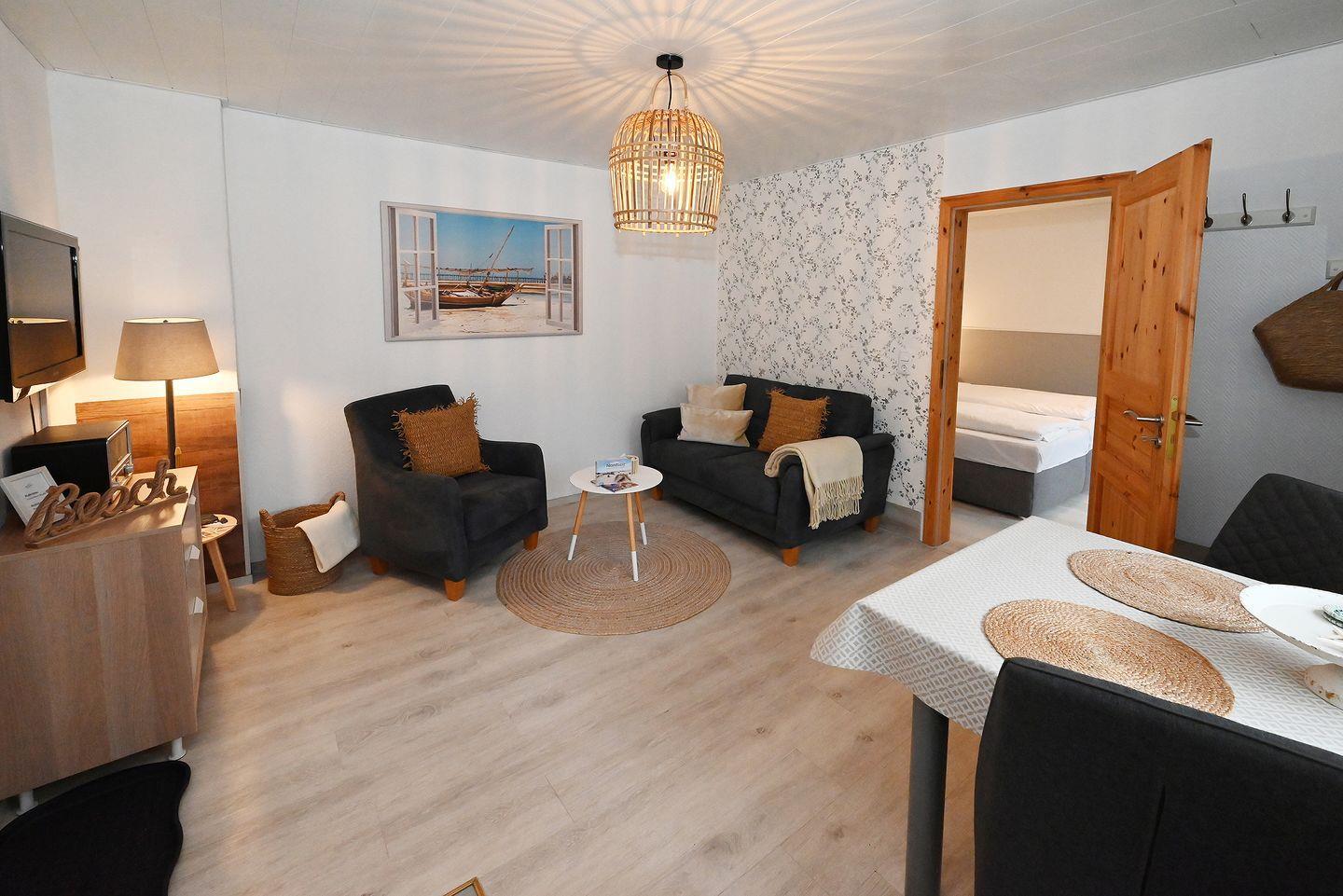 Die Wohnung Strand befindet sich im Erdgeschoss mit einem separaten Eingang.