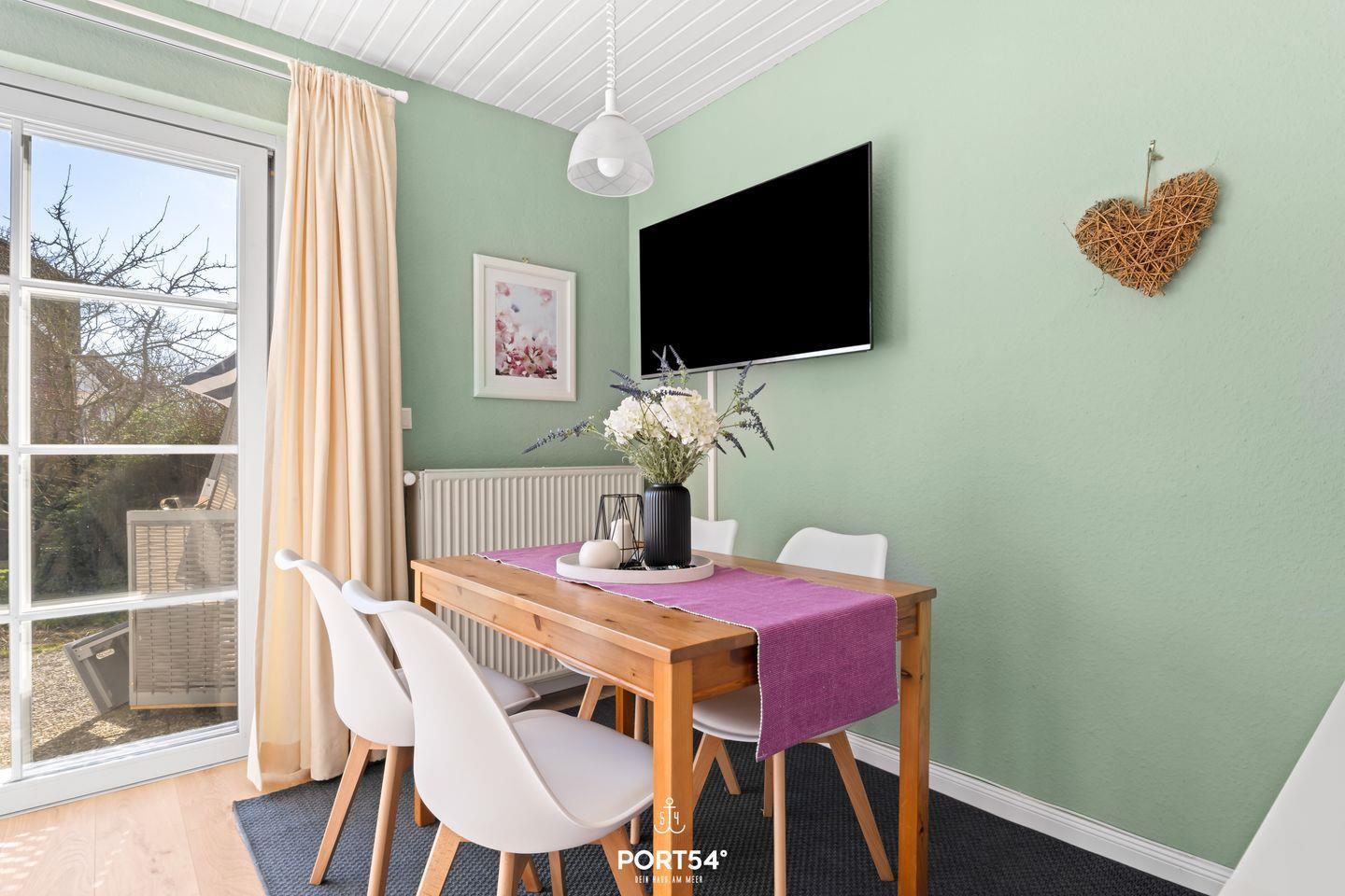 Mit einer Wohnfläche von 45 m² bietet die Ferienwohnung Platz für bis zu vier Personen. Sie betreten die Wohnung im Parterre und finden einen offenen Wohnbereich vor, der mit einer einladenden Sofaecke, einem Esstisch und einem vollständigen Unterhaltungsangebot ausgestattet ist, einschließlich zwei Fernsehern und WLAN-Zugang. Hier verbringen Sie entspannte Stunden nach einem ereignisreichen Tag an der Küste.