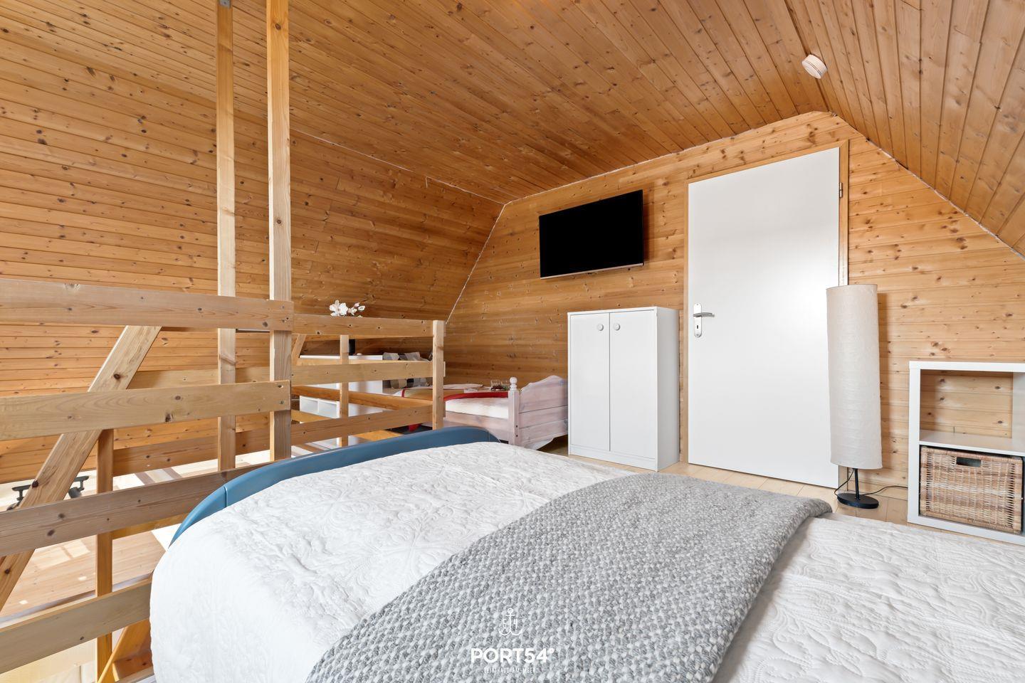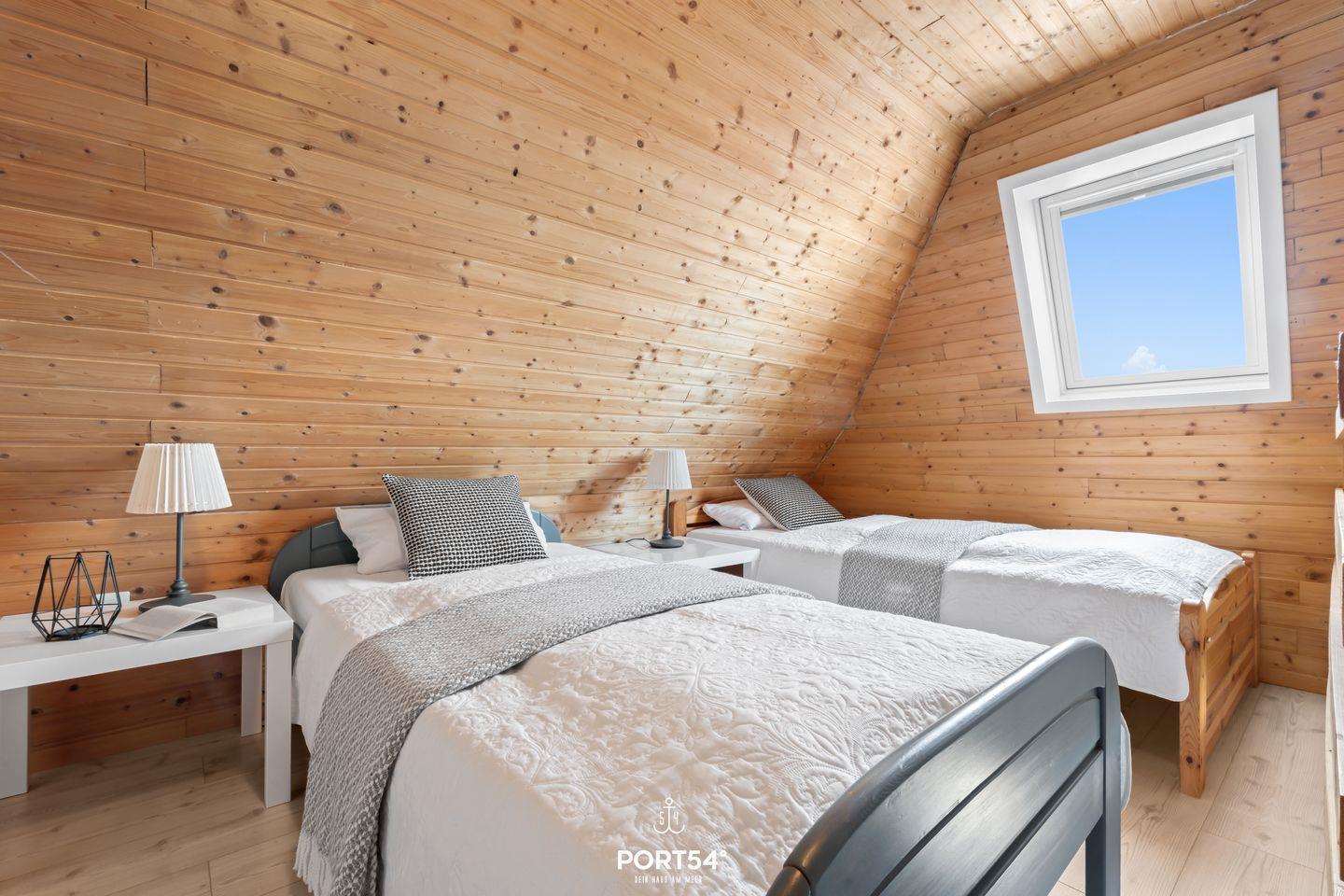 Über dem Wohnraum befindet sich die gemütliche offene Galerie mit 3 Einzelbetten und TV.