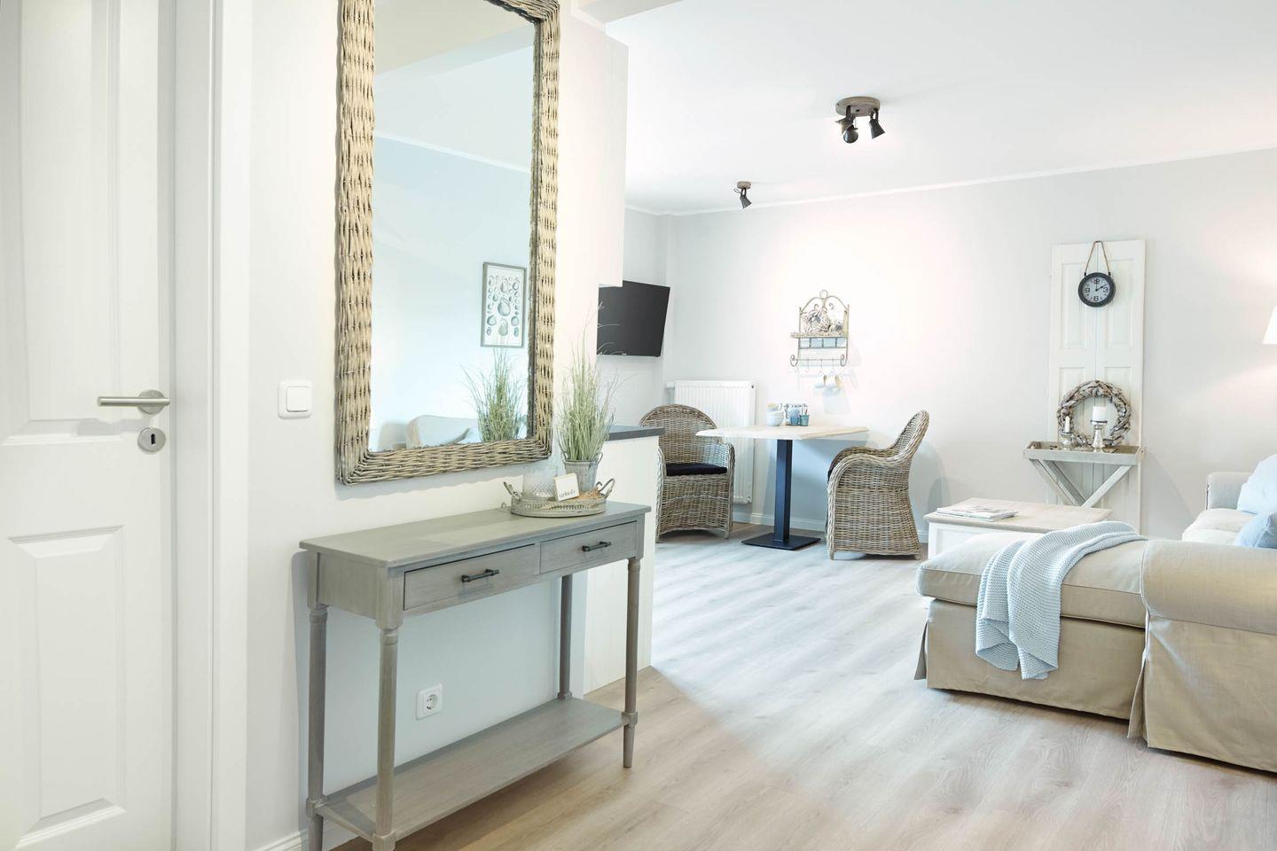 Komfortable Ferienwohnung im Landhausstil in Büsum mit eigener Terrasse und WLAN, nur 450 m vom Strand entfernt.