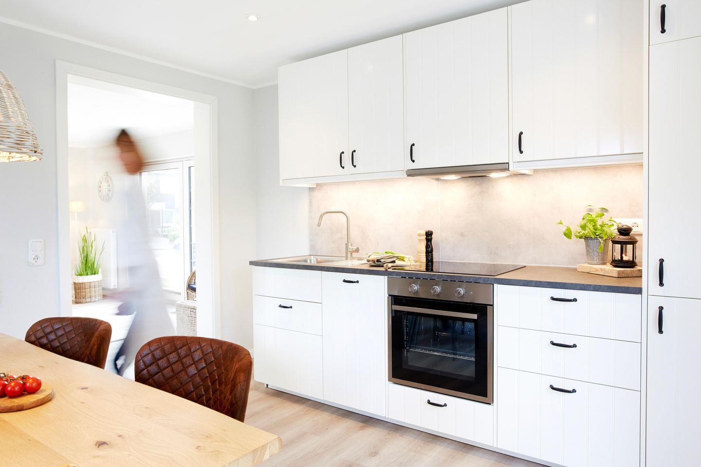 Die geschlossene Küche ist komplett ausgestattet und lässt kaum Wünsche offen. Neben einem geräumigen Kühlschrank und einem Ceran-Herd finden Sie auch einen Backofen, eine Spülmaschine sowie sämtliche Küchenutensilien, die Sie für die Zubereitung eigener Mahlzeiten benötigen. Eine Kaffeemaschine und ein Wasserkocher stehen ebenfalls zur Verfügung, um Ihren Tag mit einem frisch gebrühten Kaffee zu beginnen. Das Esszimmer mit Esstisch und Stühlen ist der perfekte Ort, um gemeinsam zu speisen und den Aufenthalt zu genießen.