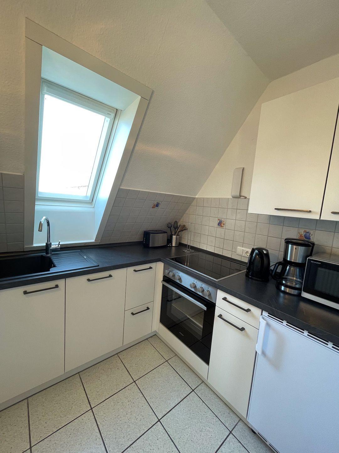 - Küche: Voll ausgestattete, moderne Küche mit Cerankochfeld, Kühlschrank mit Gefrierfach und Spülmaschine – alles, was Sie für die Zubereitung Ihrer Lieblingsgerichte benötigen